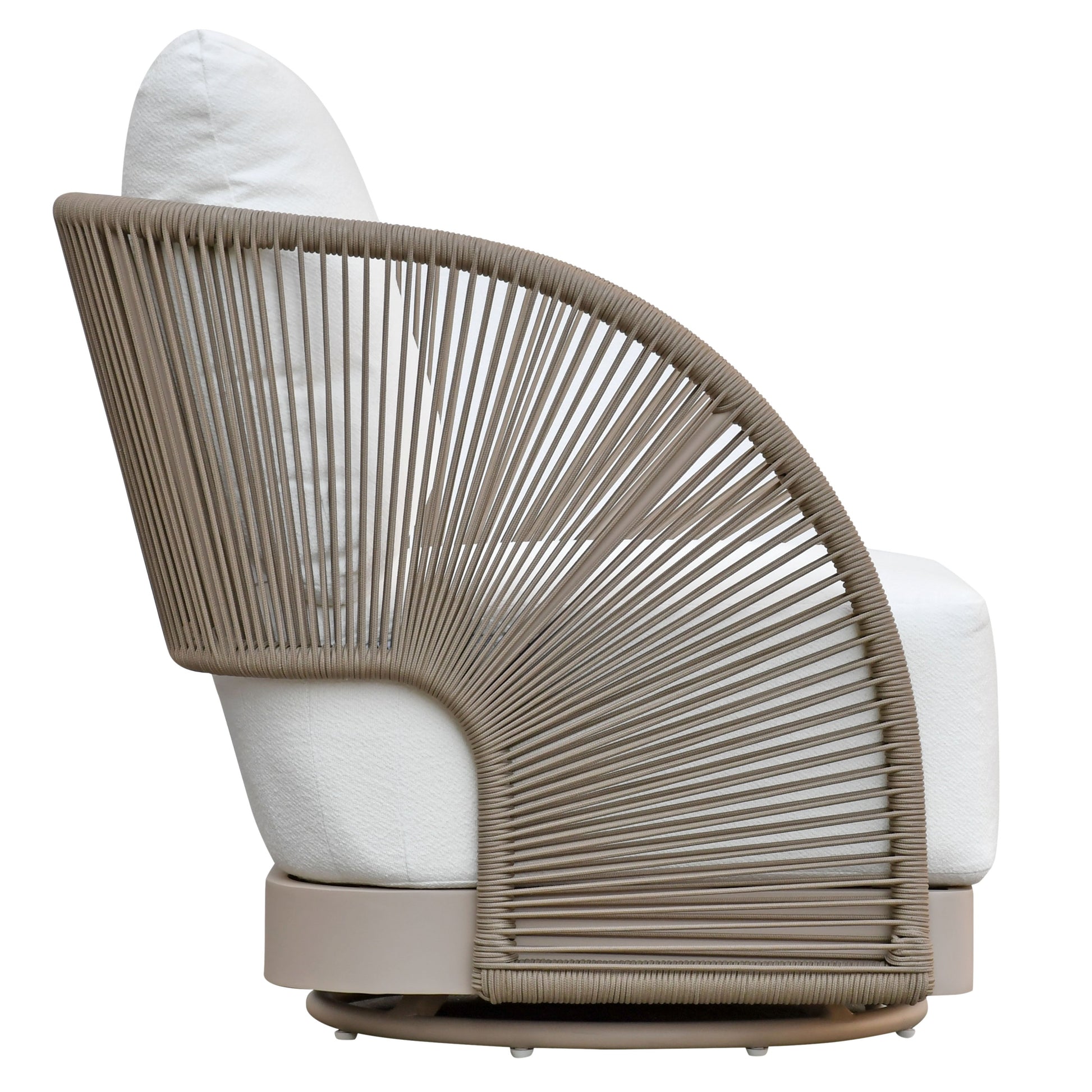 Transform your outdoor space with the Adelandra swivel outdoor chair in a stylish light grey and white palette. Its contemporary design blends seamlessly into any setting, offering both elegance and comfort. Crafted with durable metal, it provides sturdy support, while the intricately woven rope detail adds a touch of modern flair. Soft fabric cushions filled with foam ensure cozy seating for leisurely afternoons or lively gatherings. This chair invites you to unwind with its gentle swivel feature, making relaxation effortless. Elevate your patio, balcony, or garden with a piece that combines function with chic style. The Adelandra swivel outdoor chair is more than just seating; it is an invitation to experience outdoor living at its best.