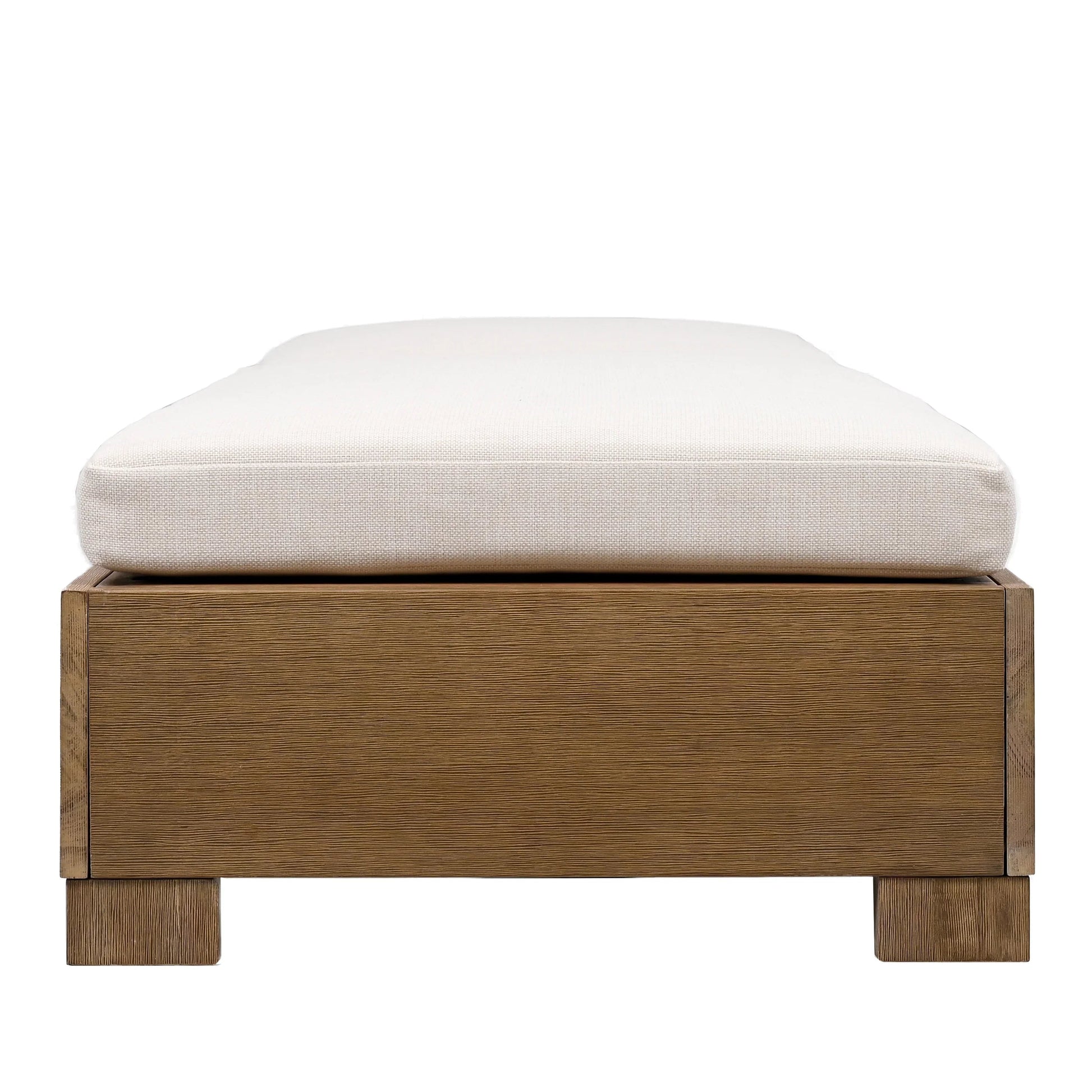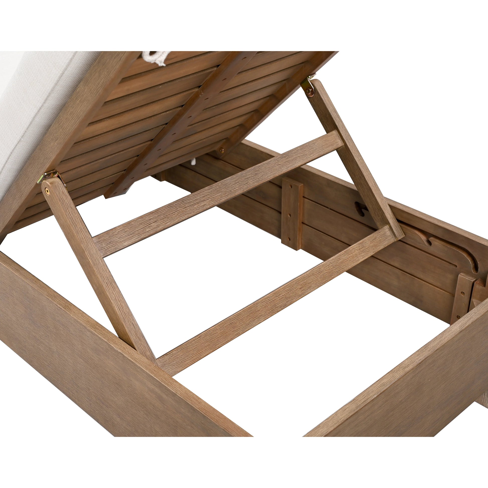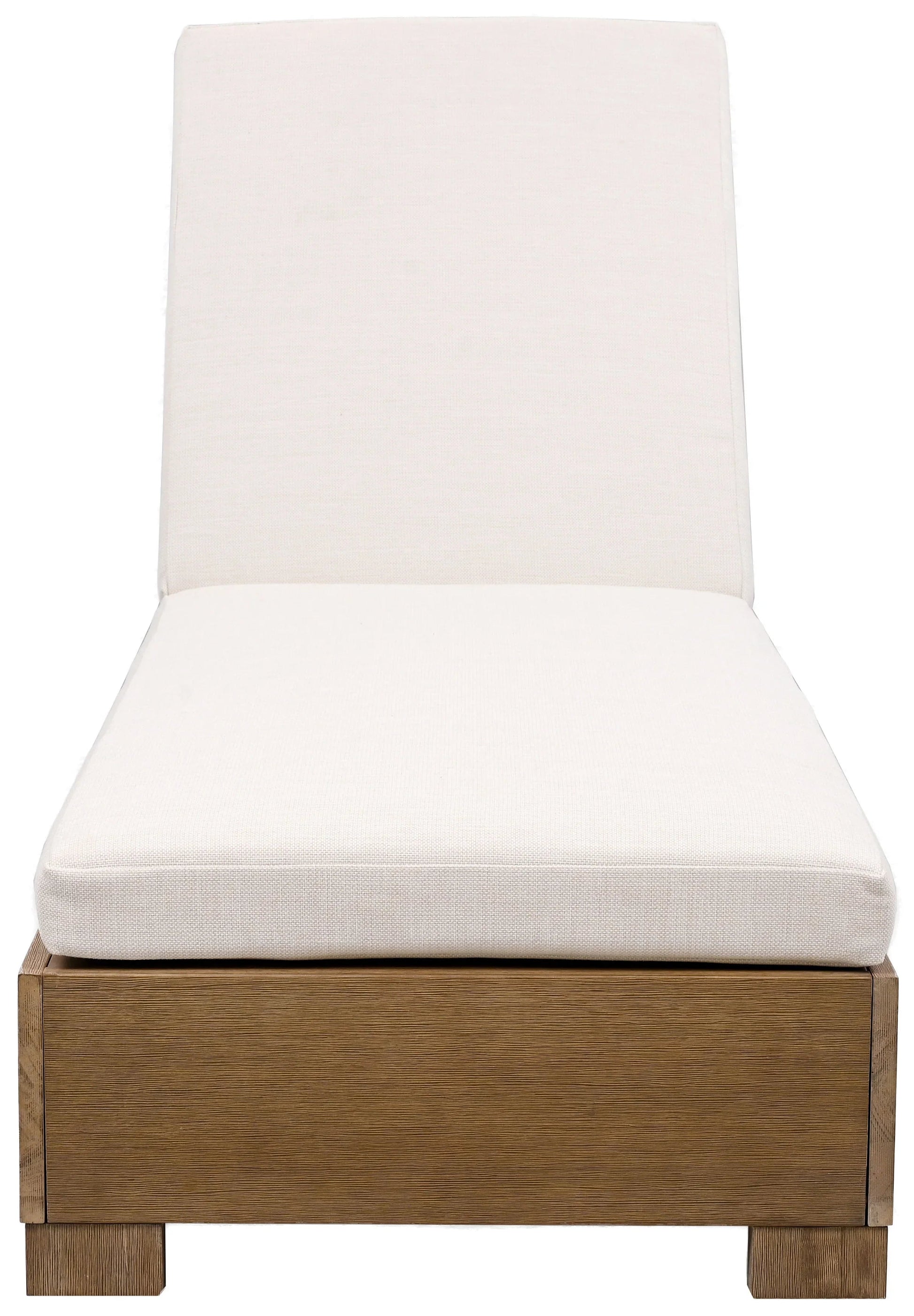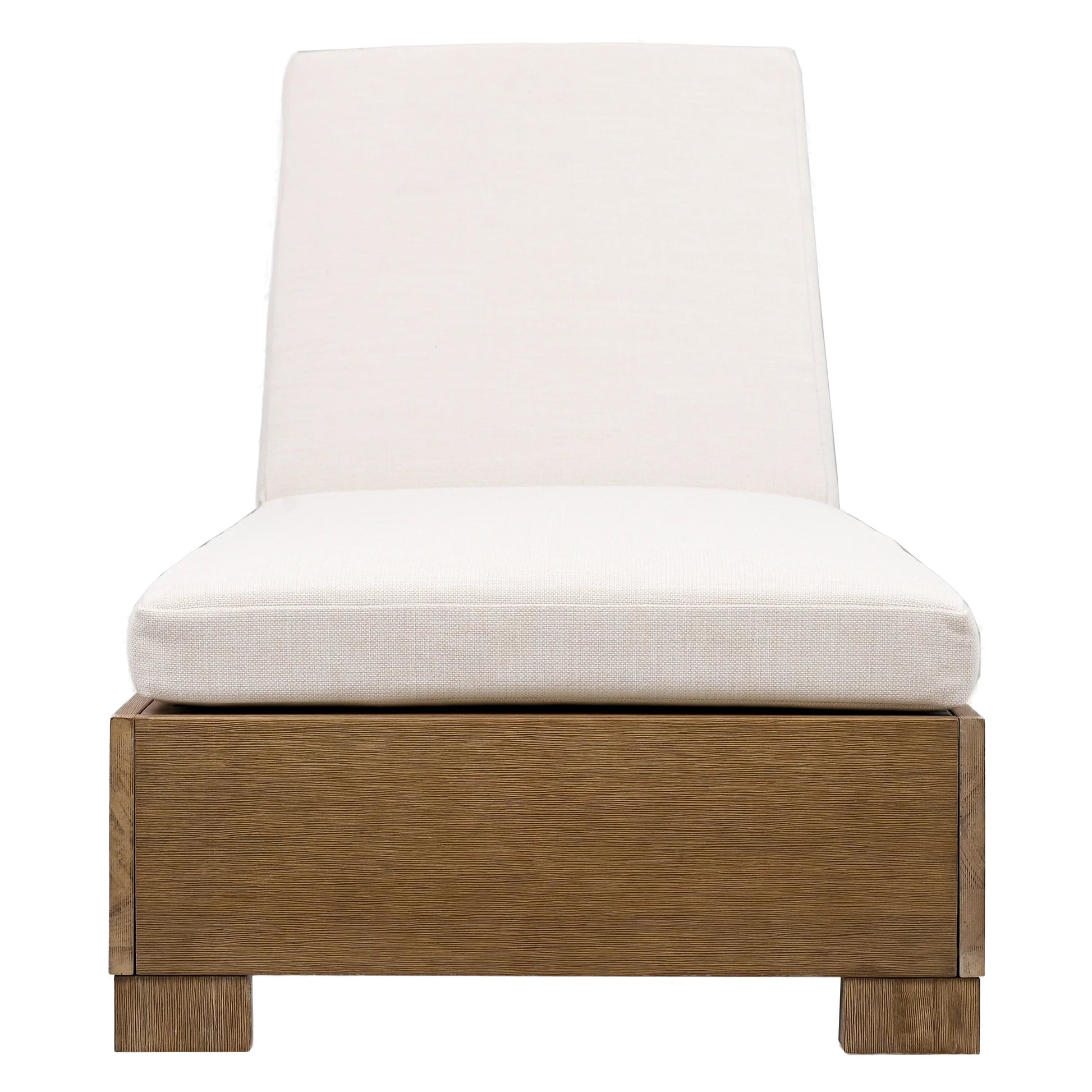 Experience luxury and tranquility in your outdoor space with the Blanquilla Eucalyptus Chaise Lounge. Crafted from sturdy eucalyptus wood, this lounge is designed to withstand various weather conditions while adding natural warmth to your patio. The natural finish highlights the beauty of the wood, enhancing your outdoor aesthetic with earthy tones. Upholstered in durable beige Olefin fabric, this chaise offers exceptional comfort and resistance to sunlight and wear, making it perfect for outdoor relaxation. Elevate your outdoor living with this elegant and resilient chaise lounge.