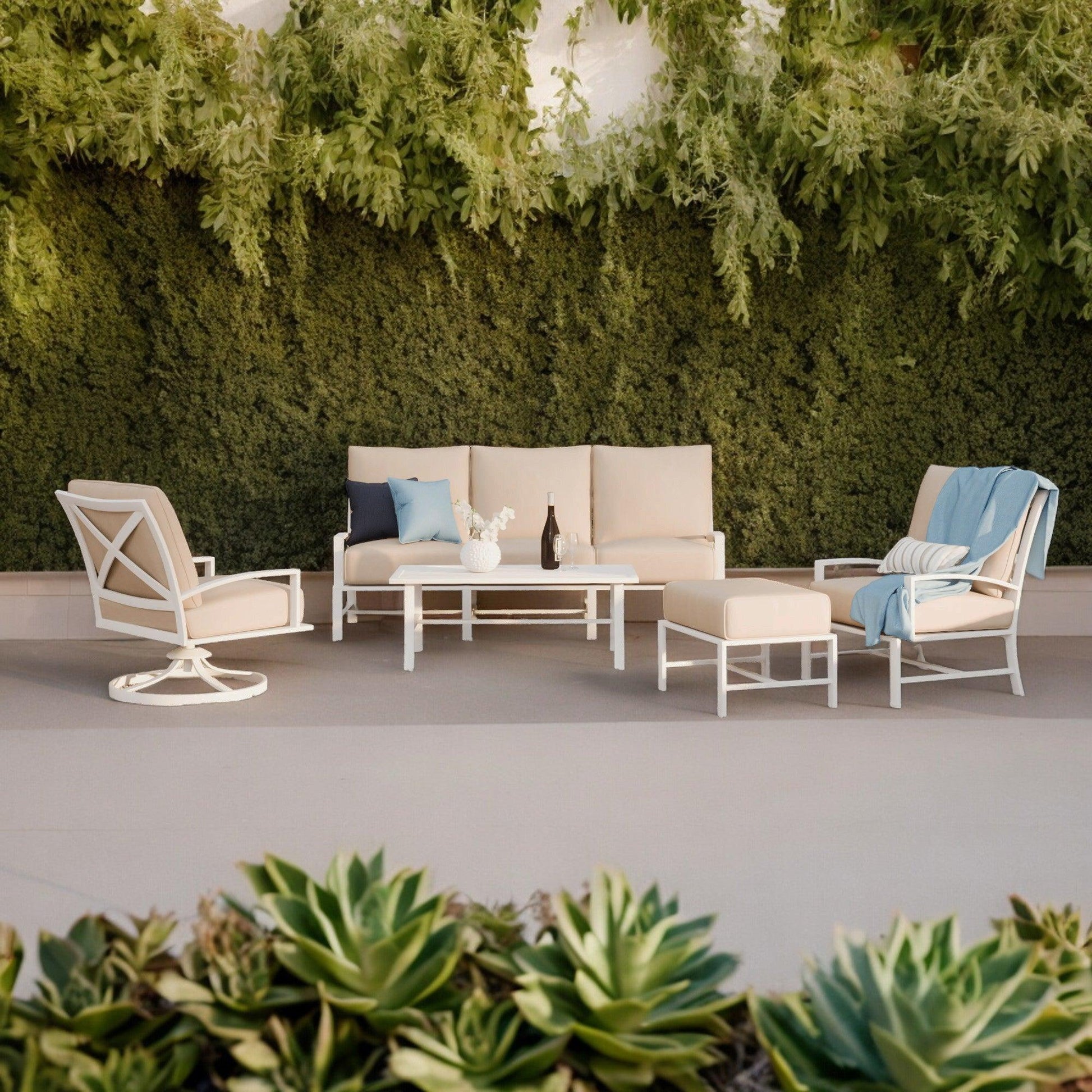 - Weather resistant, high-resiliency foam cushions