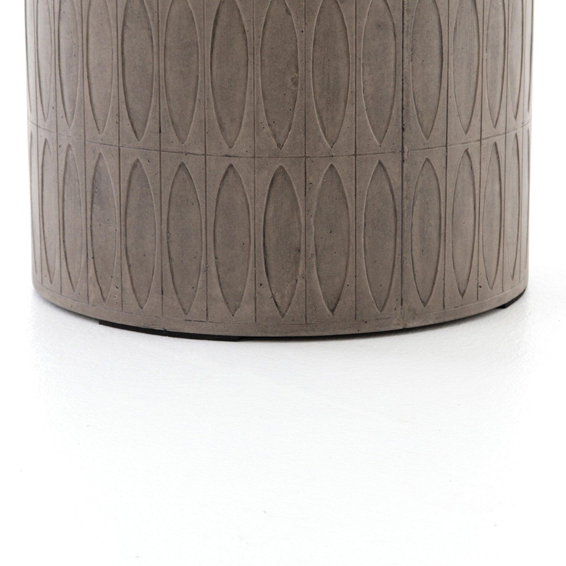 Concrete adopts alluring shapes as modern geometry plays with nature's petal form. Dark grey concrete is intricately etched for artistic intrigue. Safe indoors or out. Cover or store indoors during inclement weather or when not in use.