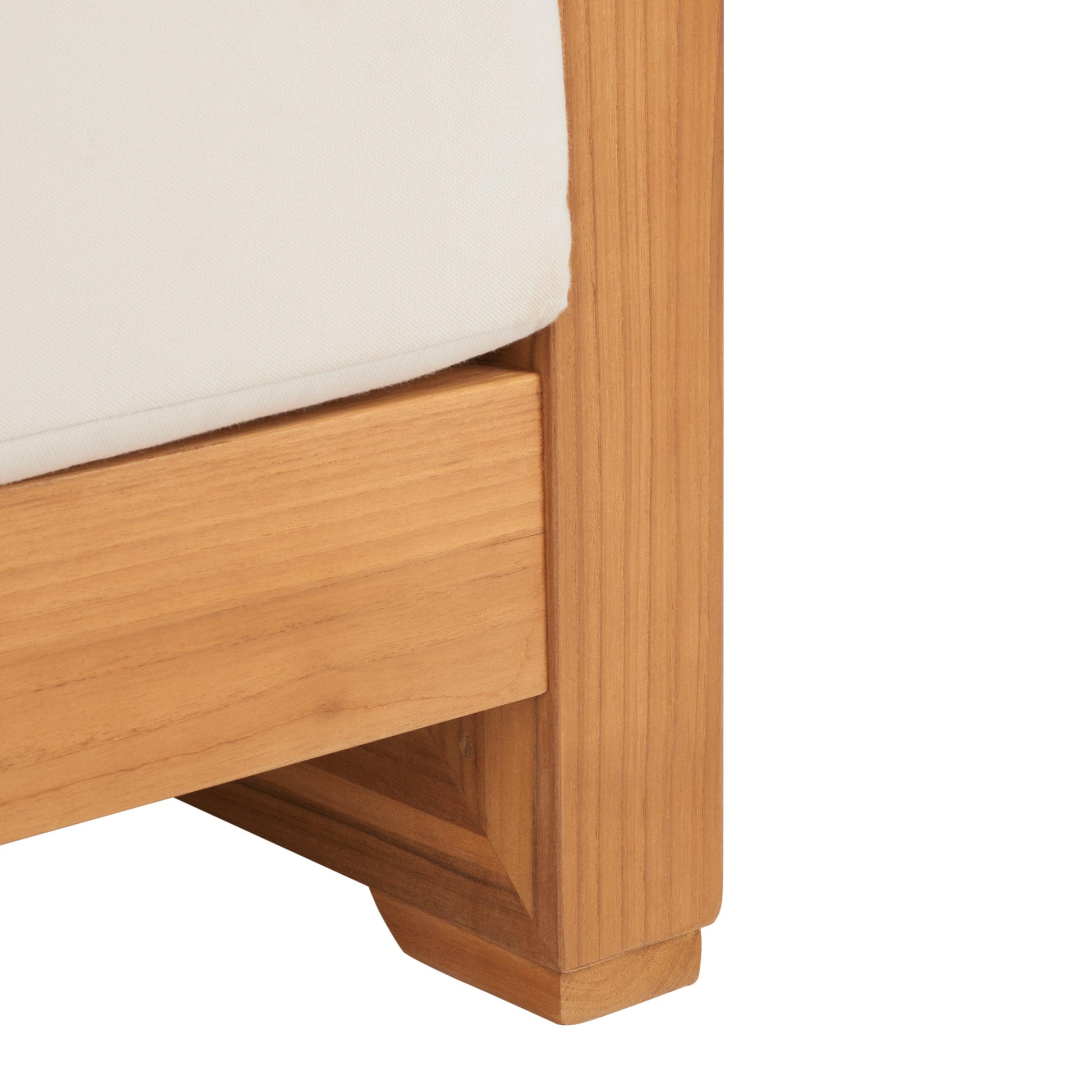 An artful exhibit of mixed-medium decor, The Curacao Outdoor Club chair blends modern metal details with coastal-cool Brazilian teak wood construction. This urbane patio chair is roomy-wide with an open-air feel from its exposed metal sides. Plush cream cushions soften the look with an invitation to relax and enjoy your surroundings.