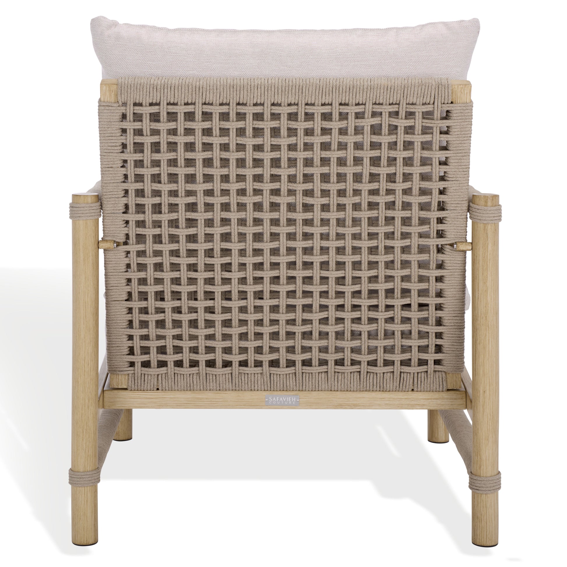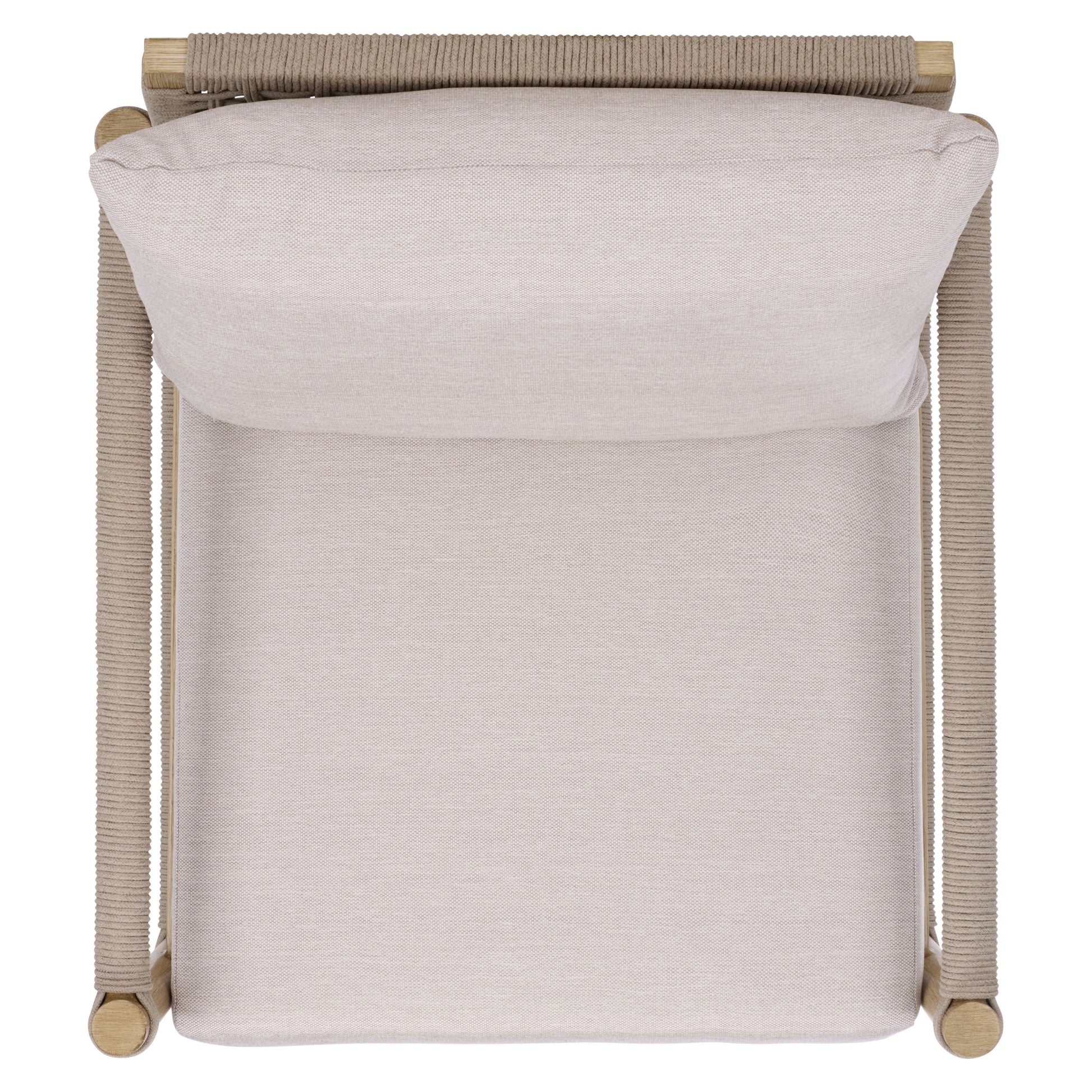 Enhance your outdoor experience with the Dorianna aluminum patio chair in sand and beige. Designed to blend with any patio decor, this chair offers both style and comfort. The sand and beige tones create a soothing and welcoming atmosphere, perfect for cozy gatherings or quiet evenings. Made with a combination of metal, rope, fabric, and foam, each component harmonizes to provide support and relaxation.