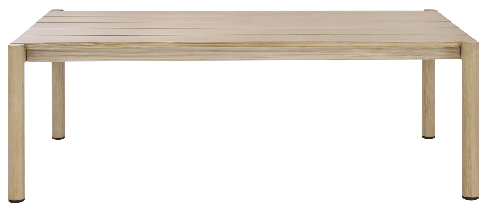 Introducing the Dorianna aluminum patio coffee table in a calming sand hue, crafted from sturdy metal. This piece offers a blend of functionality and style, perfect for your outdoor sanctuary. Its clean lines and neutral color make it a versatile addition to any patio decor. Whether hosting guests or enjoying a quiet afternoon, this table provides ample space for coffee cups and conversation alike. Its metal construction ensures it can confidently handle the elements of any season. Transform your outdoor experience with the Dorianna table a perfect complement to your patio setting.