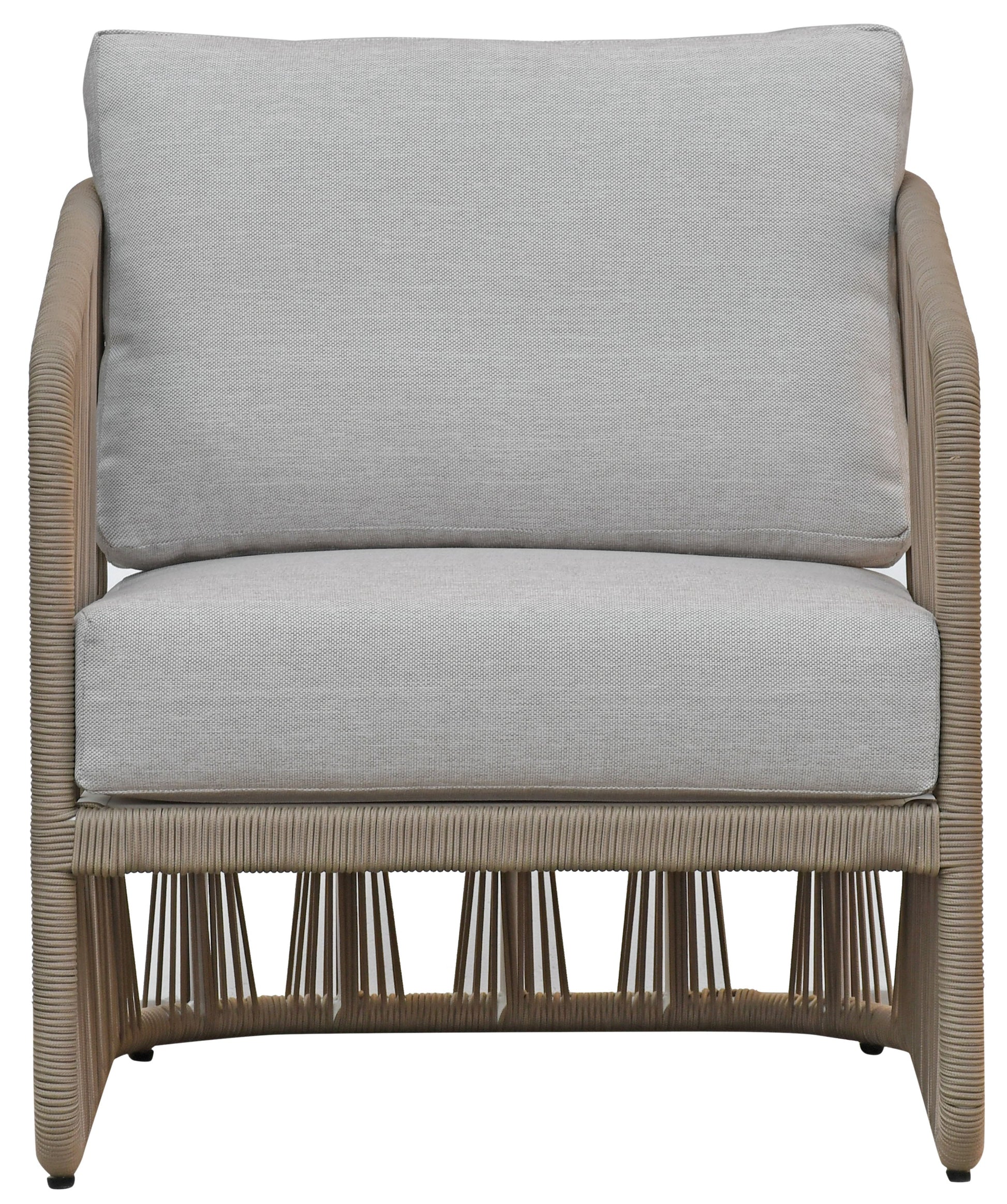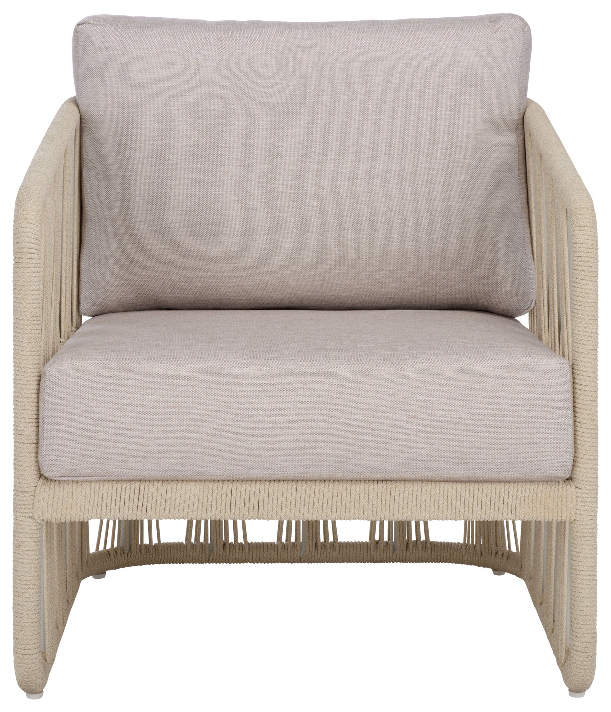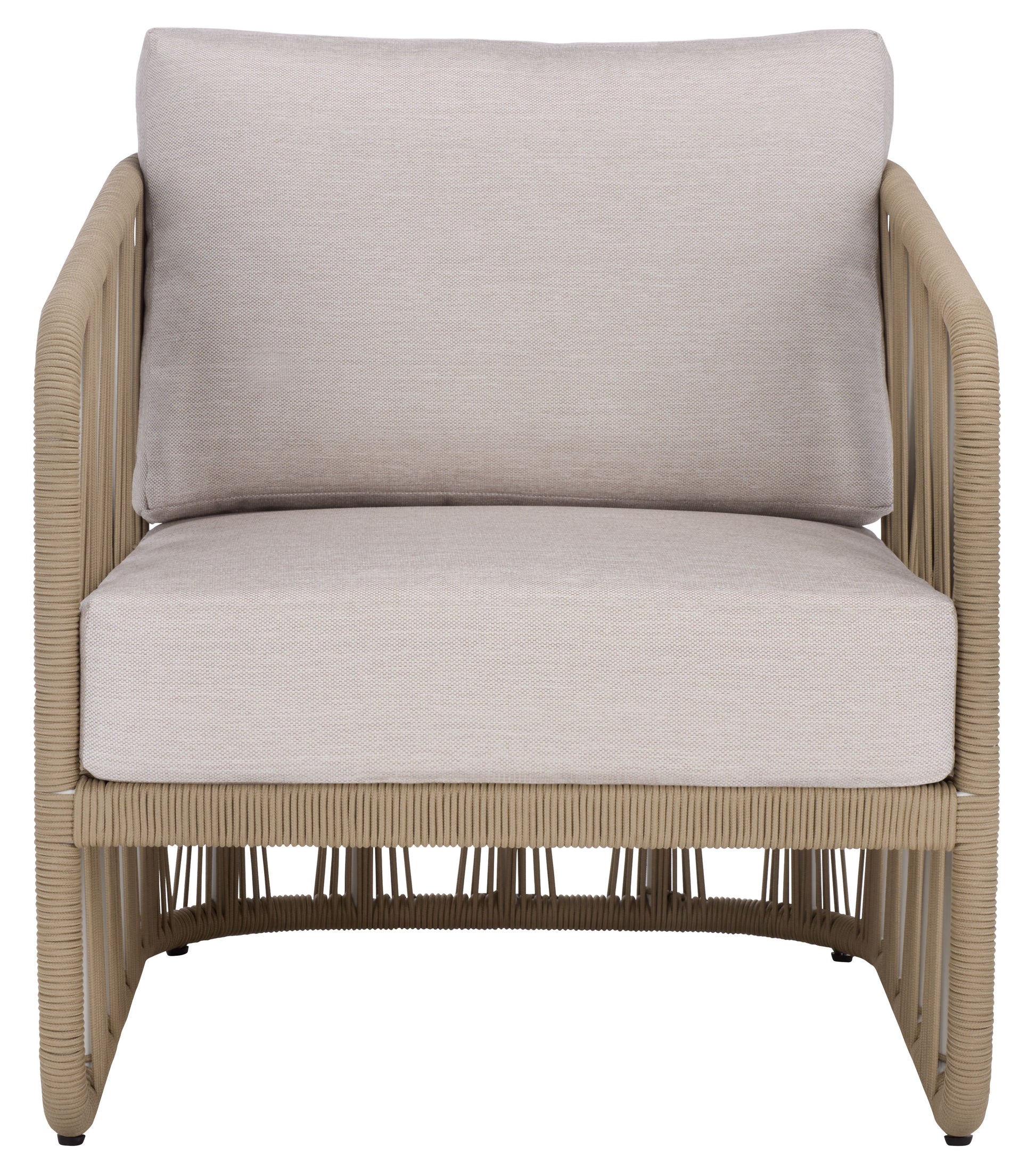 Elevate your outdoor space with the Franklyn Rope and Aluminum Patio Chair in tan and beige. Designed to enrich your patio, this chair combines sleek metal with woven rope accents for a touch of modern elegance. The soft fabric cushions filled with foam offer a comfortable seat, allowing you to relax and enjoy the beauty of nature. The neutral color palette of tan and beige complements a variety of styles and decor, making it a versatile addition to any outdoor setting. Whether you're hosting friends or enjoying some quiet time, this patio chair brings both function and style to your home. Unwind in comfort and let the Franklyn chair transform your outdoor experience.