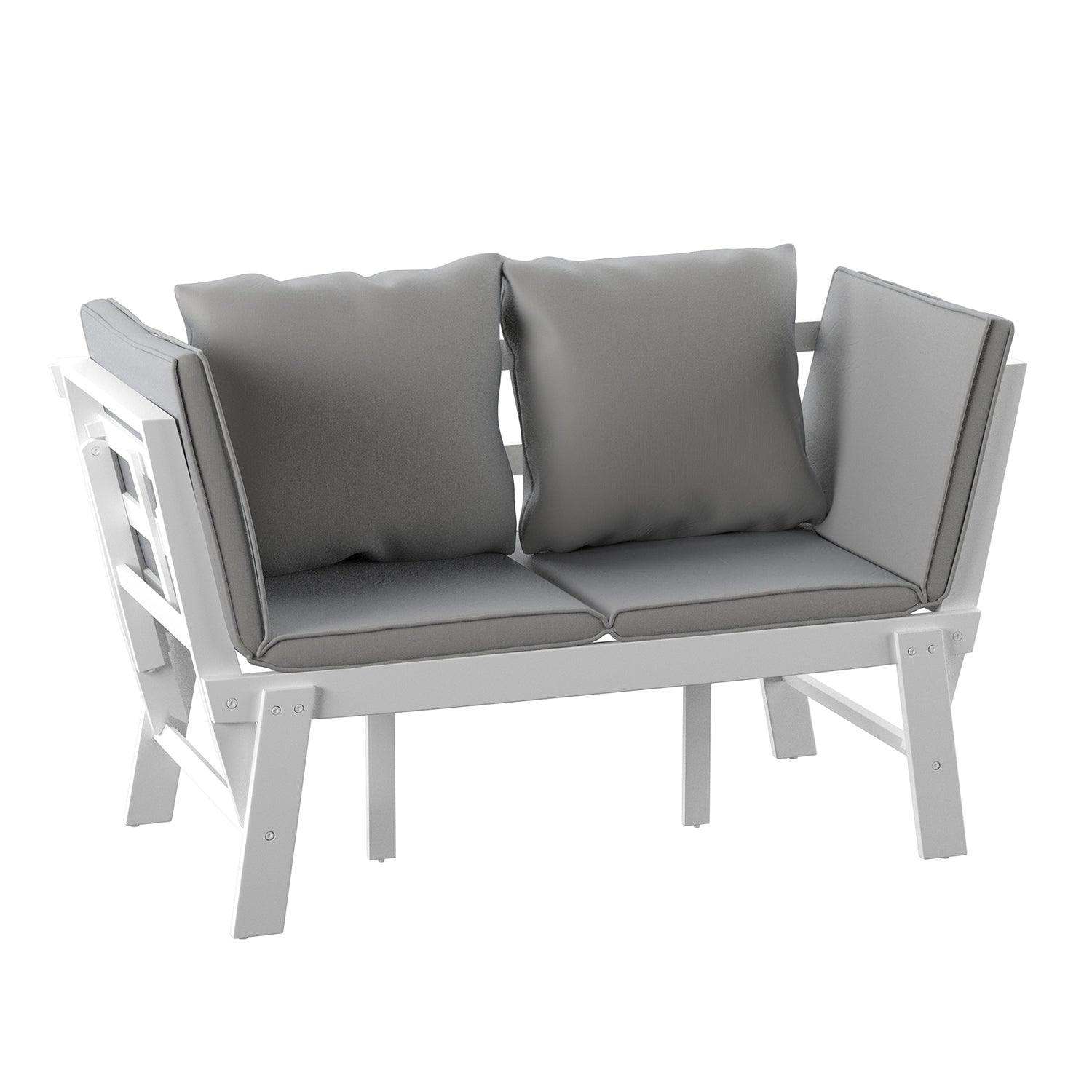 Life of leisure. Relax in the lap of luxury with the Dolavon Outdoor Convertible Settee. The convertible acacia frame offers five star service, transforming from loveseat to chaise lounge to settee at your command. Removeable pillows and cushion customize your outdoor experience, while the extendable base keeps you sitting pretty or reclining in relaxation. Slide this convertible chaise lounge poolside and soak up some rays, or add to your outdoor oasis to create an at-home resort.
