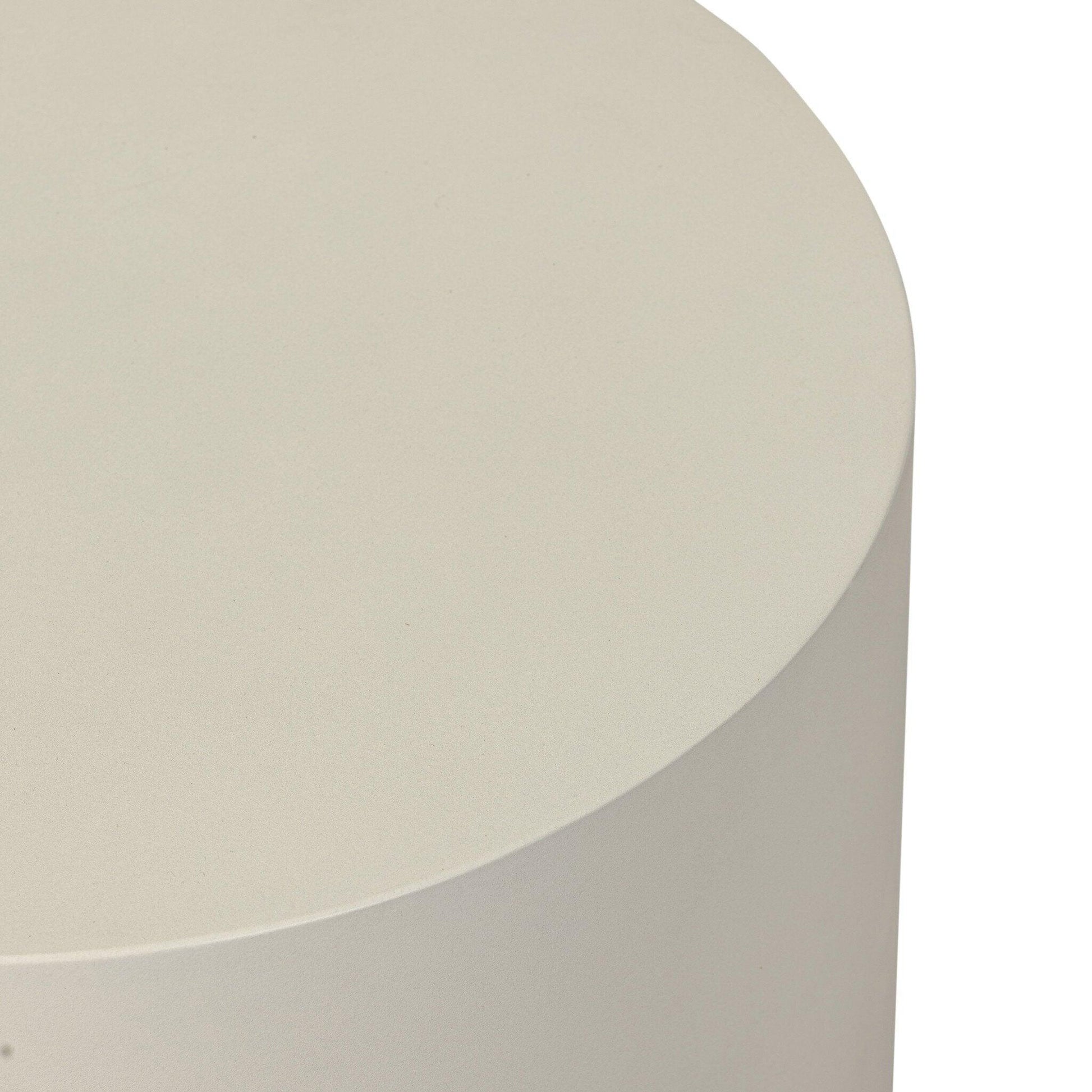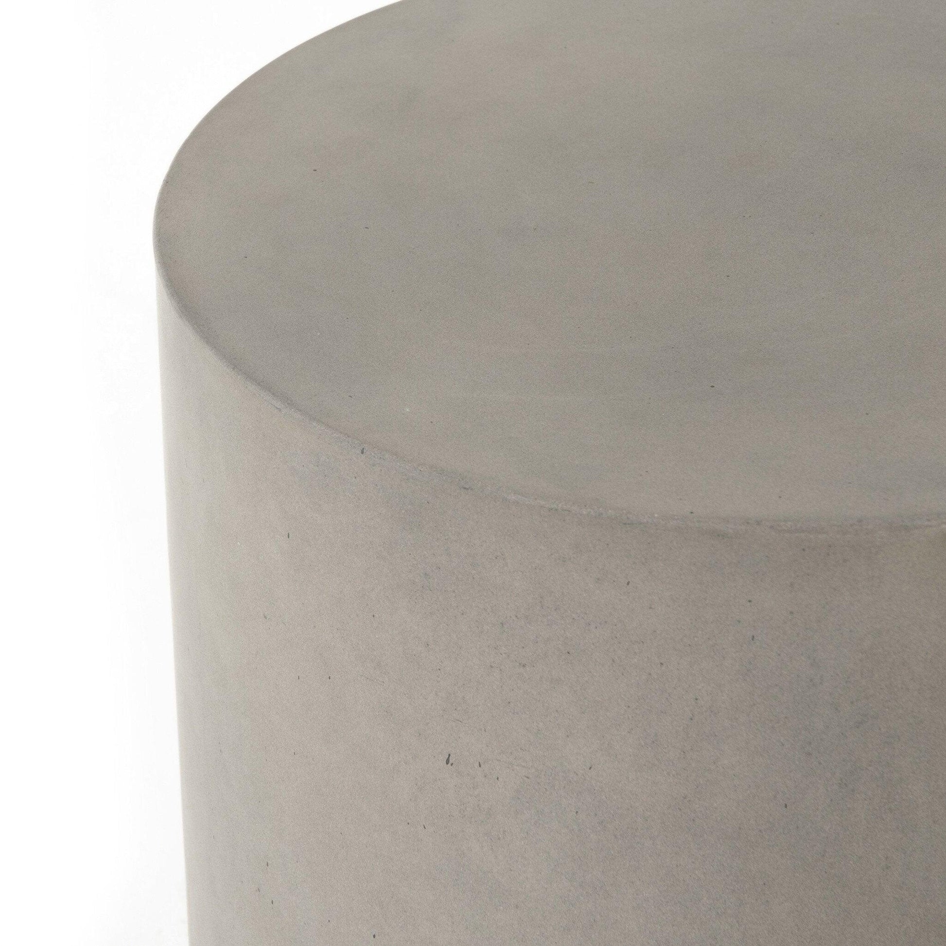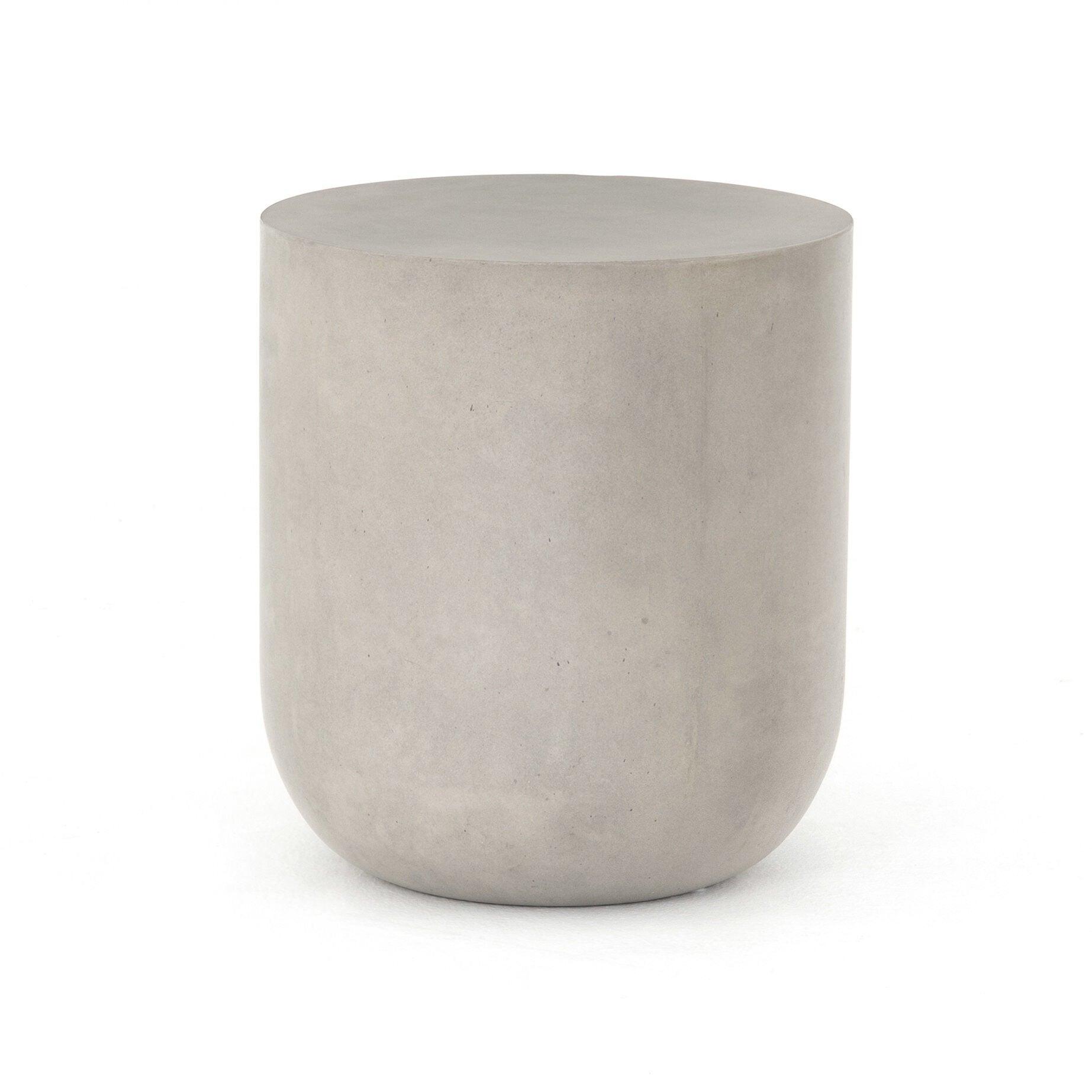 Grey-finished concrete and classic drum shaping make for an effortlessly cool end table indoors or out. Cover or store inside during inclement weather and when not in use.