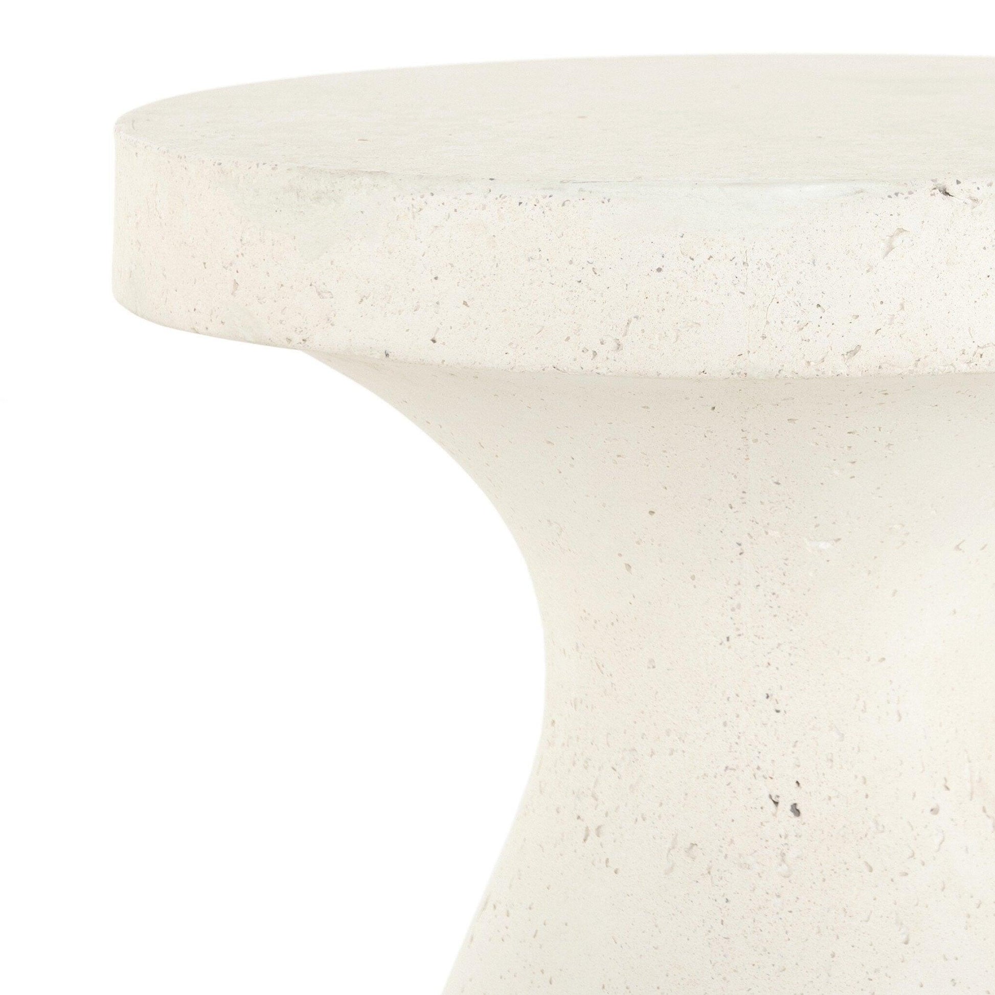 Smooth concrete is shaped into a durable eye-catching outdoor end table. Its natural texture brings extra dimension and character to each piece. Cover or store inside during inclement weather and when not in use.