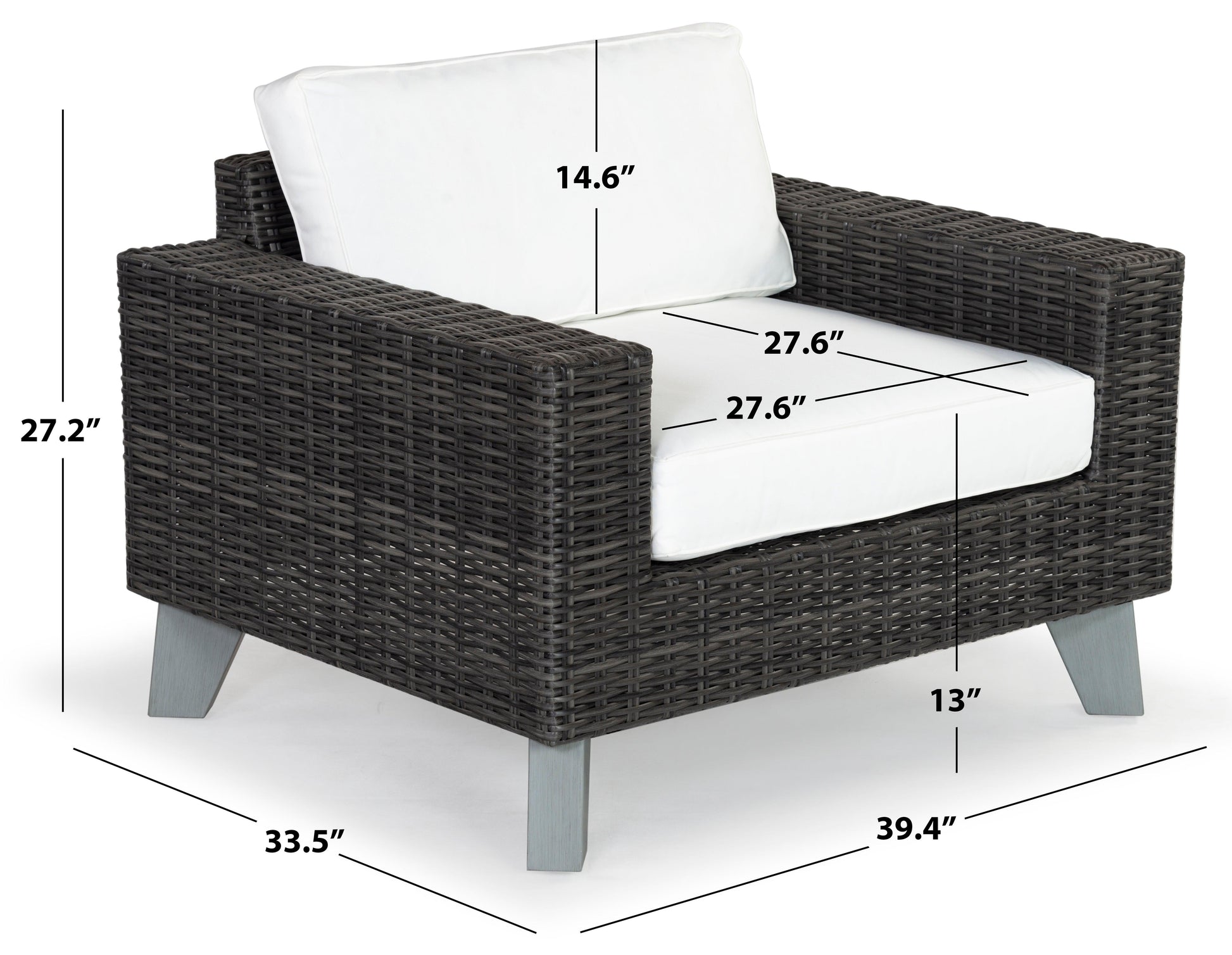 Bring effortless style and comfort to your outdoor space with our Margarita patio chair. Our chair offers a modern touch with plenty of textures. Its clean-lined frame is updated with an all-weather wicker weave for a sleek and airy look. Featuring a deep seat and generous armrest, the chair offers the perfect spot to sink in and relax. Its boxy and densely padded seat and back are upholstered in white performance fabric. Perched upon power-coated aluminum legs, the accent chair lends lasting style and comfort to your patio, terrace, or sunroom.