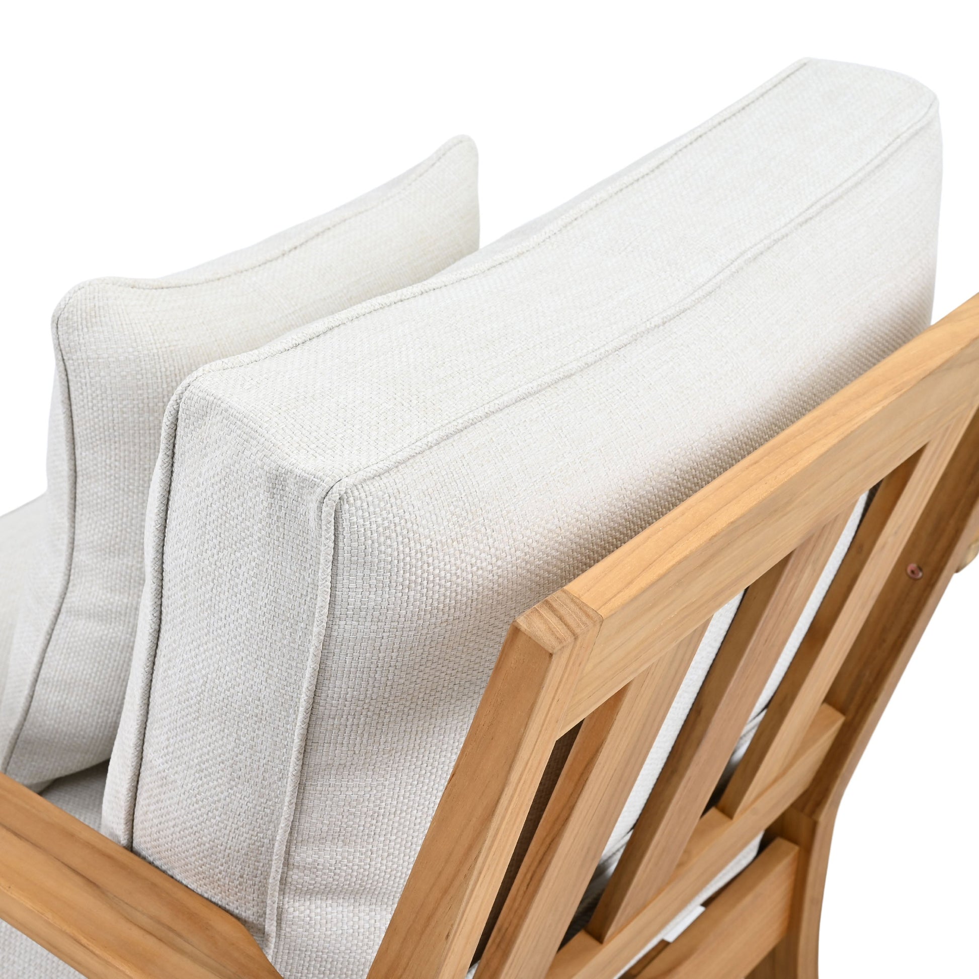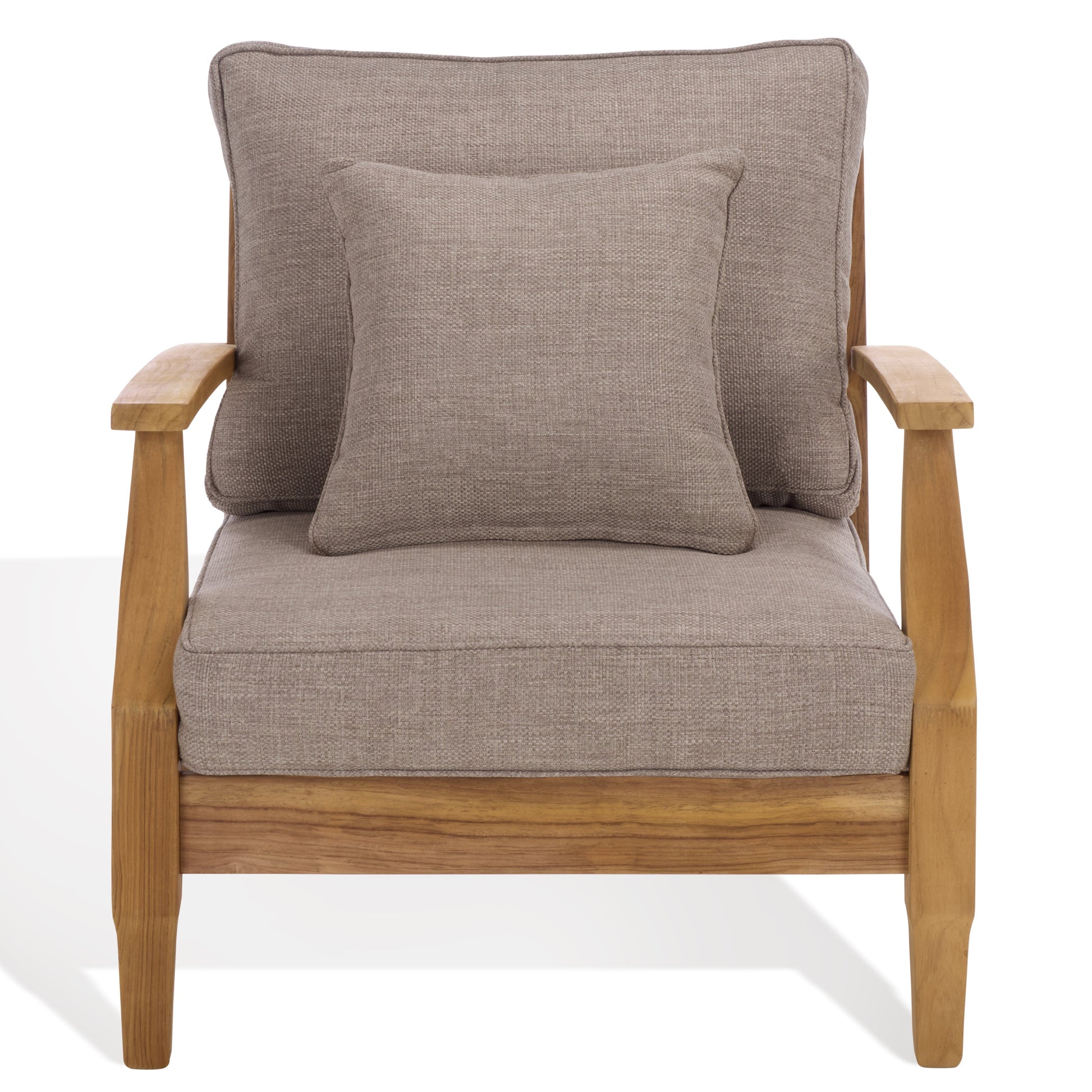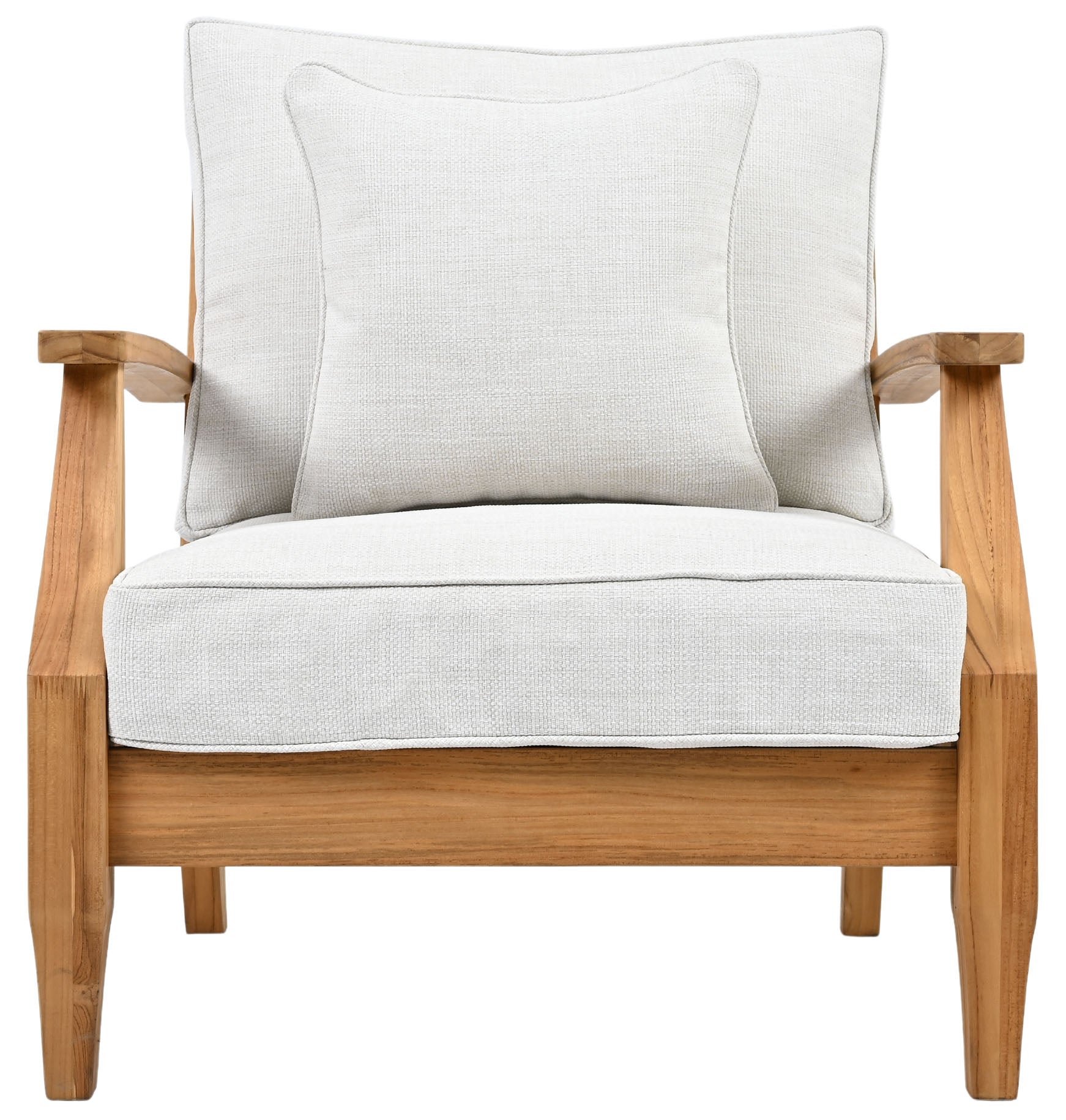 Flaunting coastal villa class and high-style design, the Martinique Teak Patio Armchair elevates the ambiance of any outdoor patio, porch, or backyard deck area. Crafted of natural teak wood with a slatted back and angled silhouette, this smart patio chair hints at timeless colonial style. Soft Olefin upholstery ensures that Martinique looks and feels fabulous season after season.