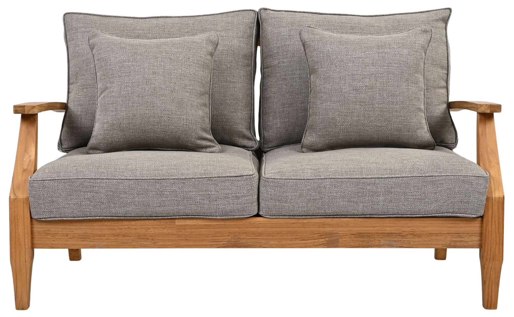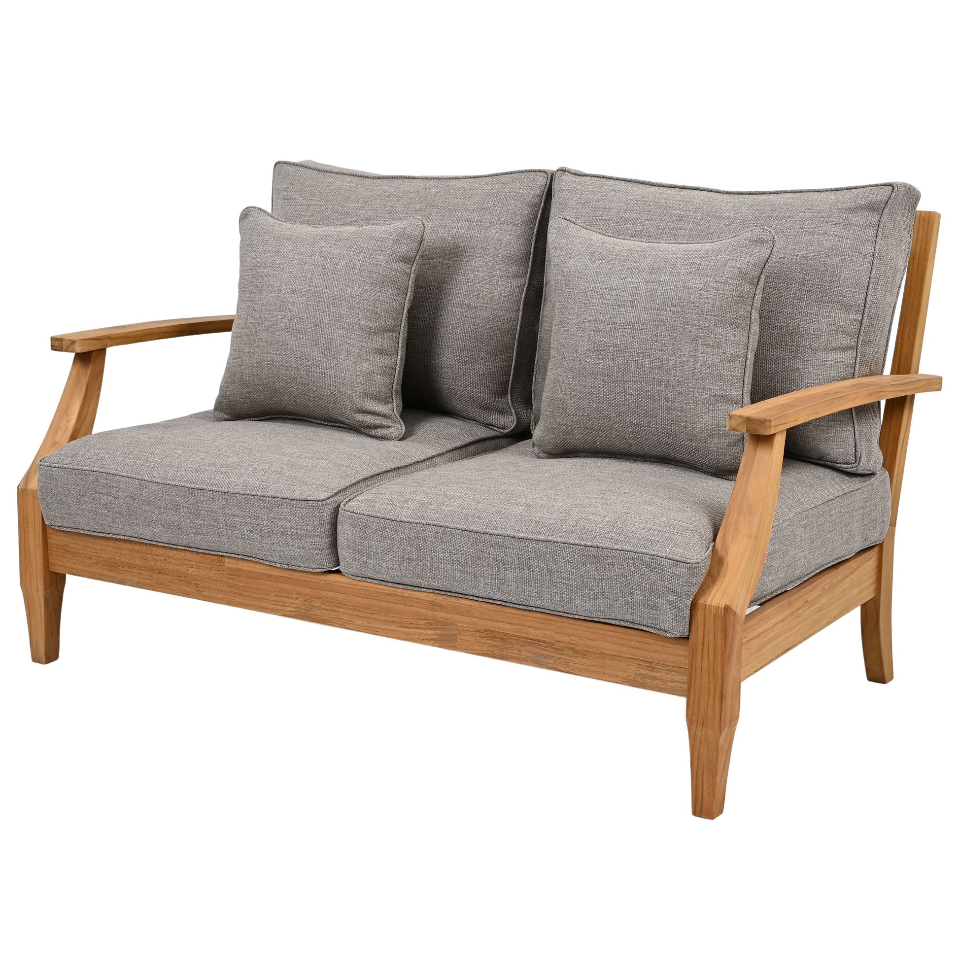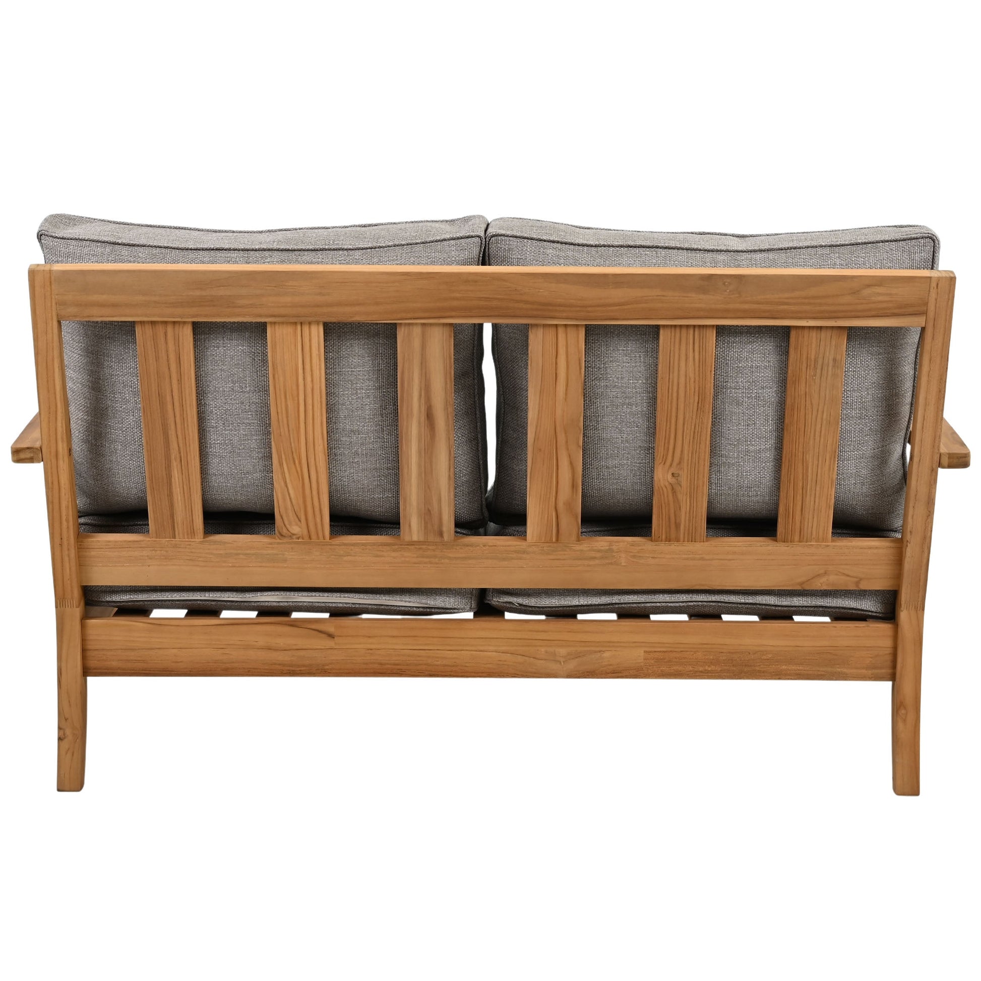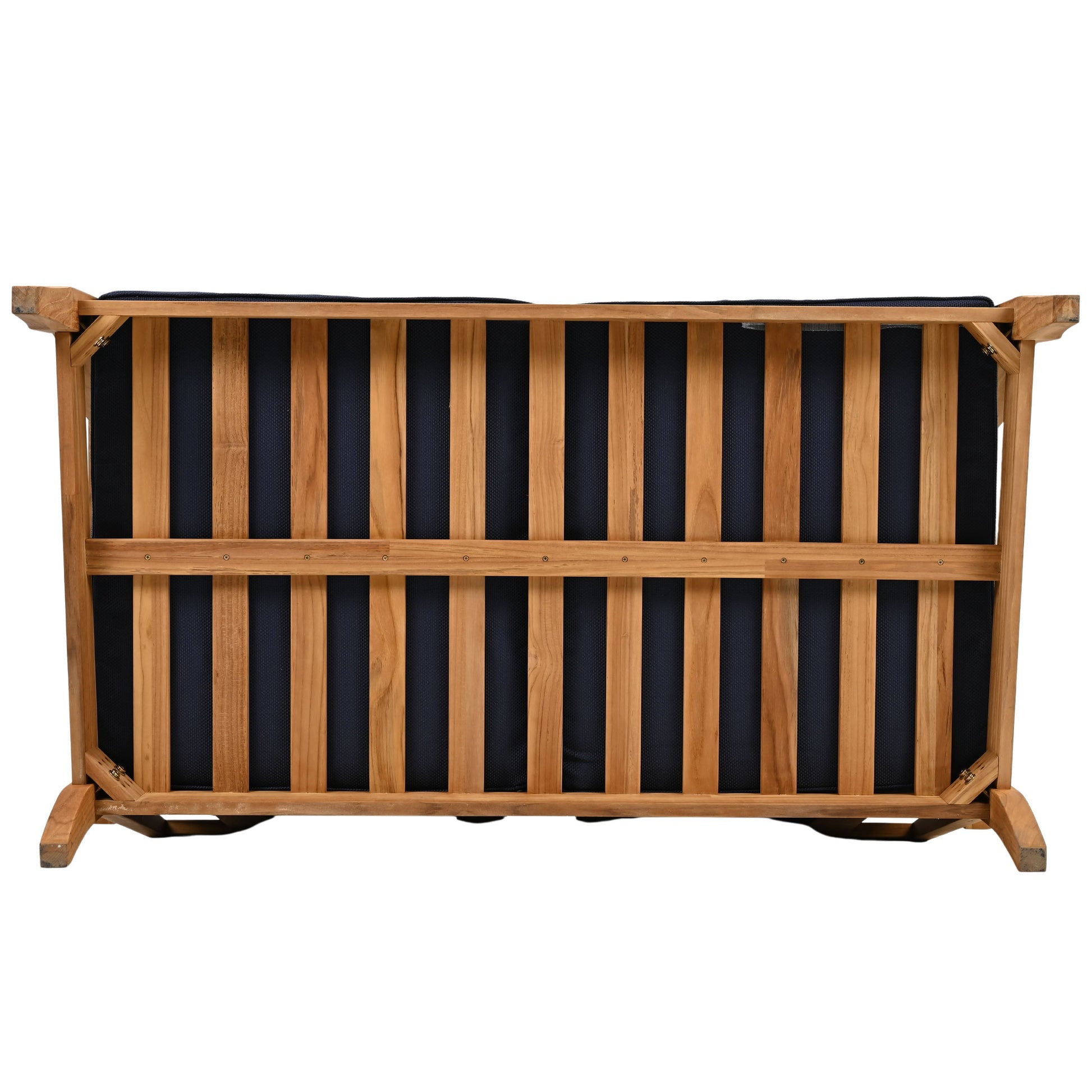 Introducing the Martinique teakwood patio loveseat, where comfort meets style in your outdoor space. Crafted with natural teak, its warm tones create a welcoming atmosphere, while the navy cushions add a touch of elegance. Designed for relaxation, this loveseat combines wood, fabric, and foam to offer a cozy and inviting seating experience. Perfect for mornings with coffee or evenings with friends, the Martinique loveseat enhances any patio with its sophisticated look. Add charm and comfort to your outdoor living area and experience a new level of enjoyment with this beautifully crafted piece.