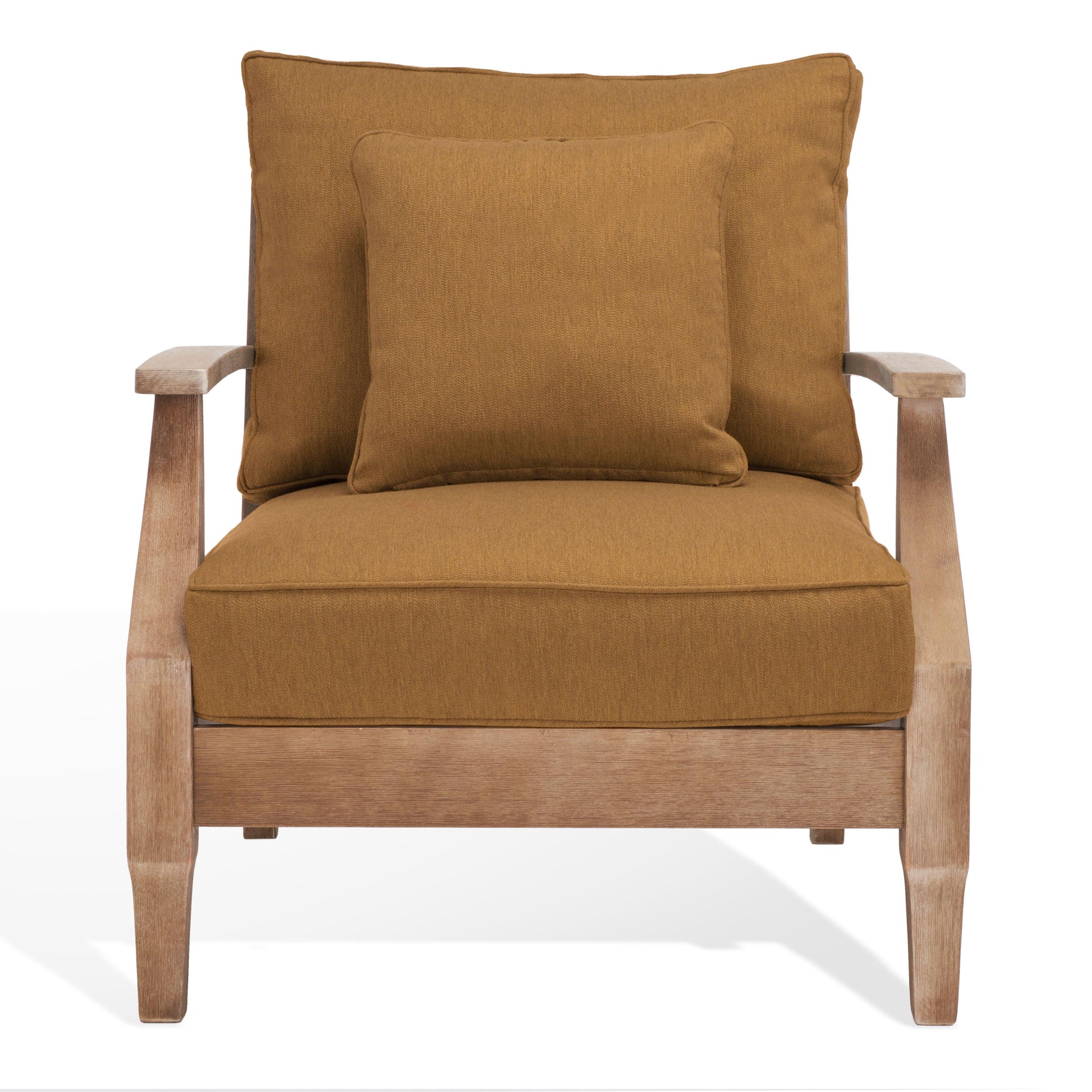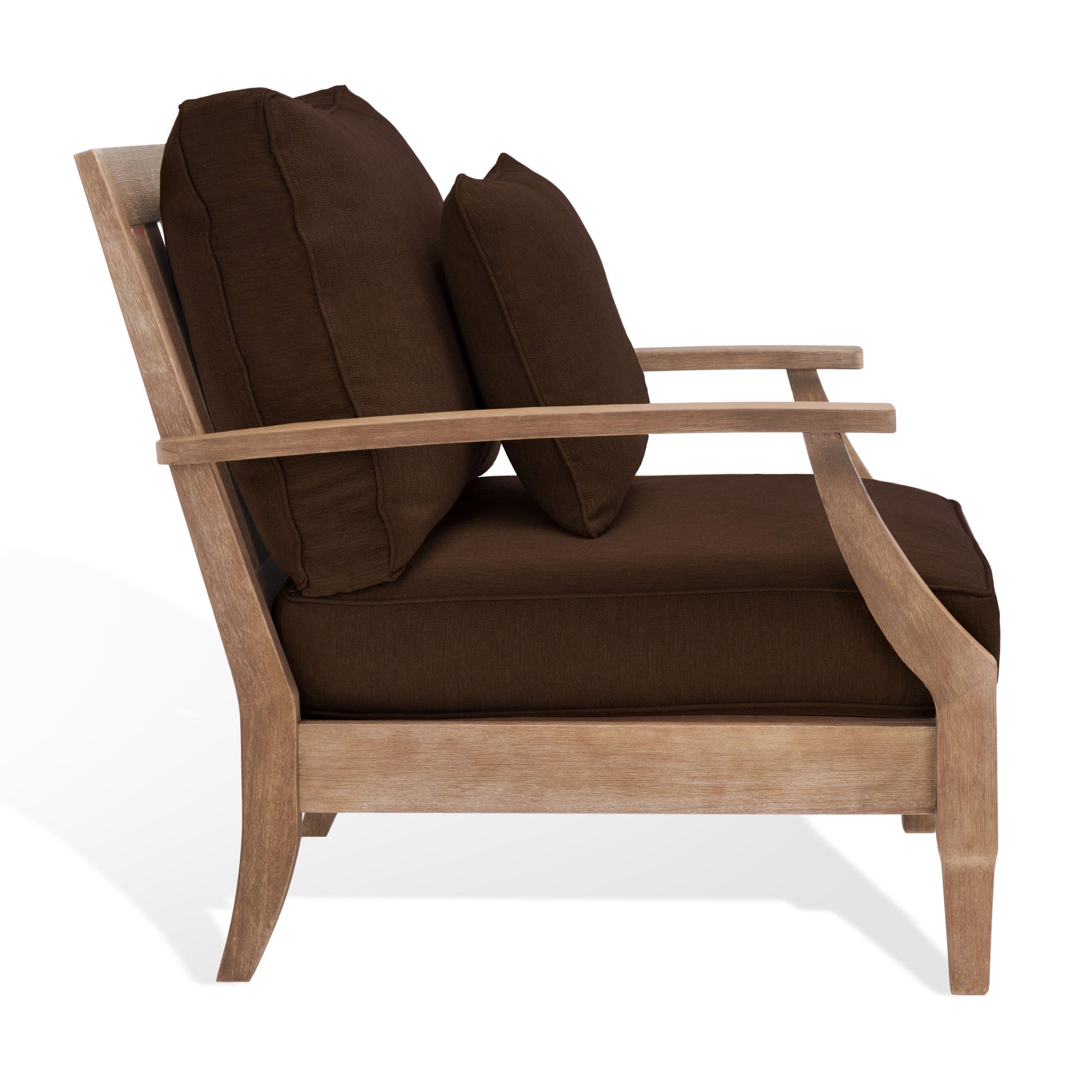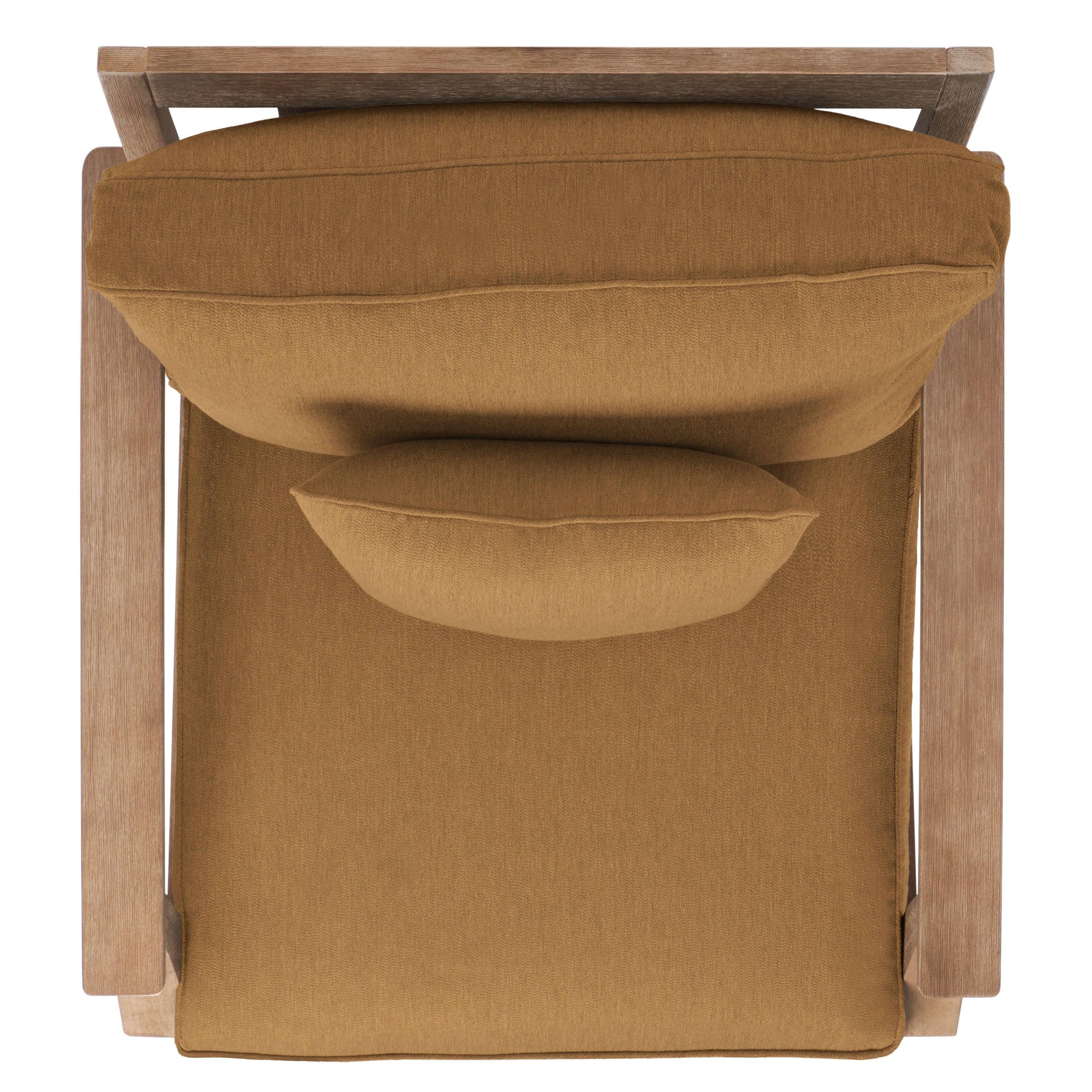 Flaunting coastal villa class and high-style design, the Martinique Wood Patio Armchair elevates the ambiance of any outdoor patio, porch, or backyard deck area. Crafted of natural eucalyptus with a slatted back and angled silhouette, this smart patio chair hints at timeless colonial style. Soft Olefin upholstery ensures that Martinique looks and feels fabulous season after season.