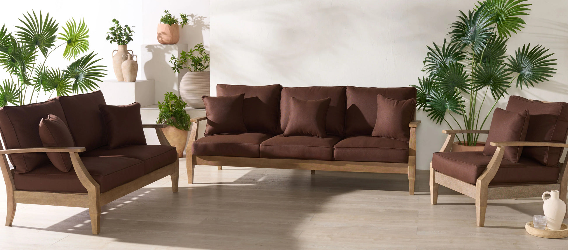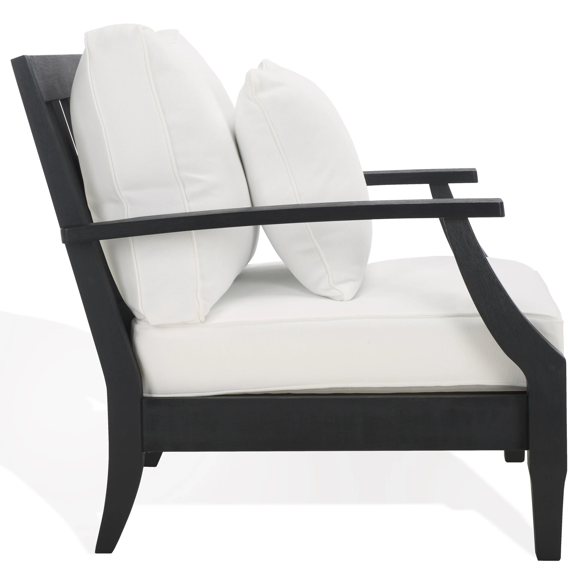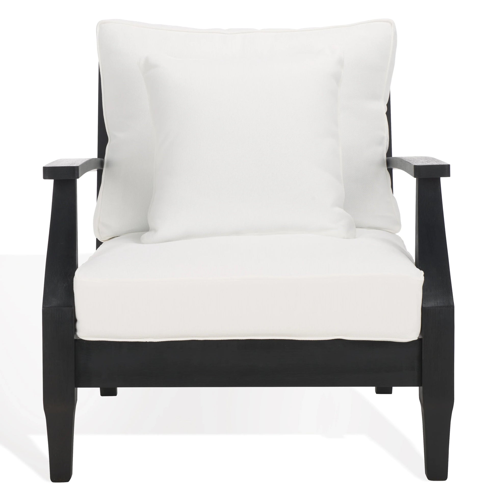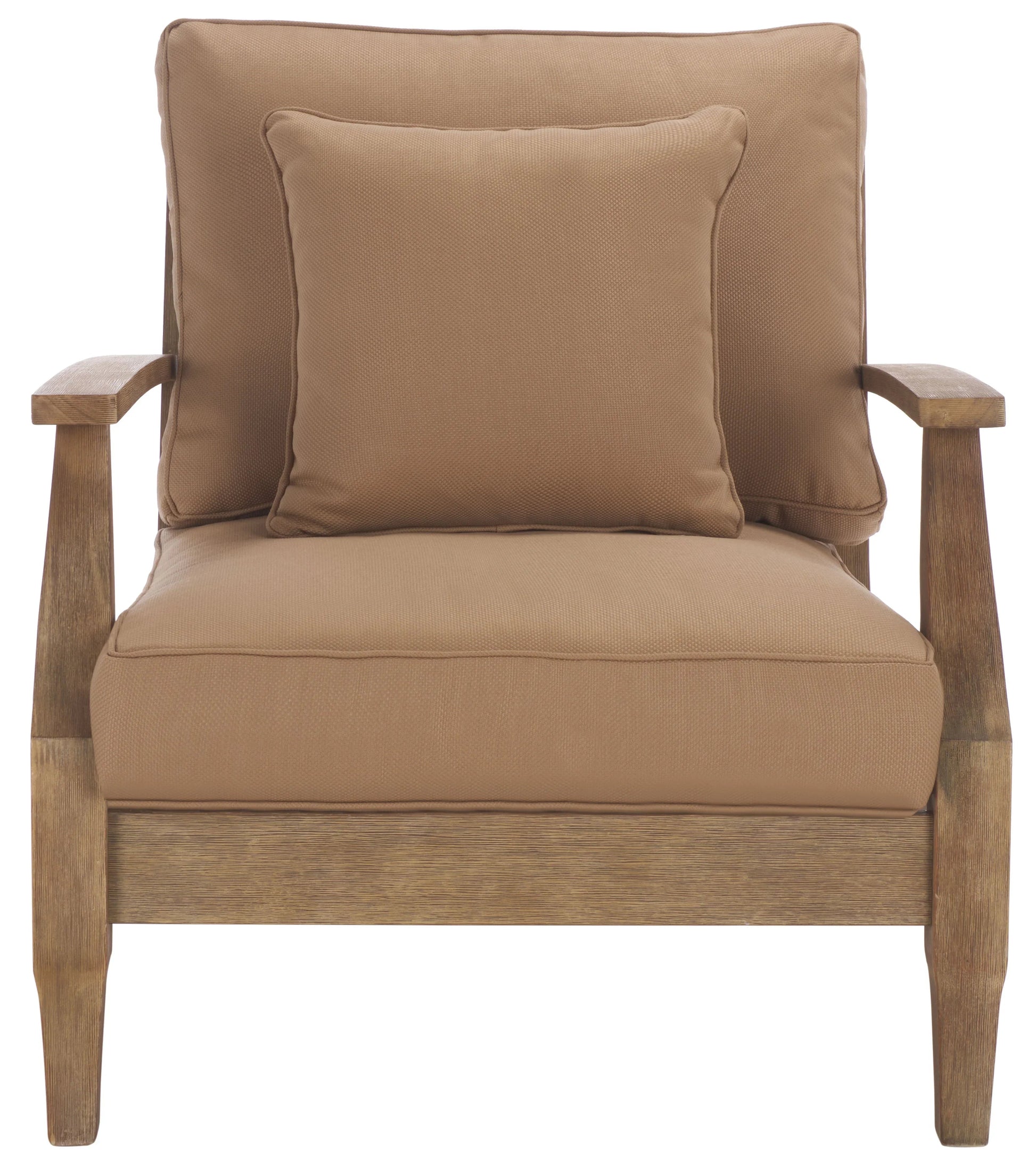 Bring timeless colonial charm to your outdoor space with the Martinique Wood Patio Armchair. Crafted from natural eucalyptus wood, it features a slatted back and angled design for both style and comfort. The soft Olefin upholstered cushion enhances relaxation, making it ideal for patios, porches, or garden settings. Assembly required.