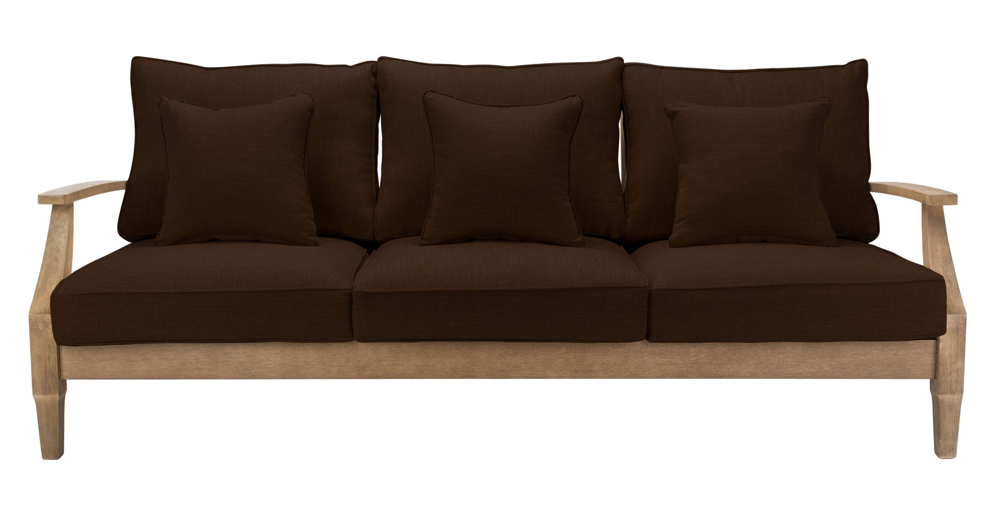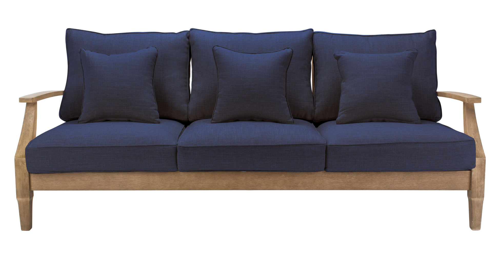 The lavish look of coastal villa decor comes to any outdoor patio, porch, or backyard deck with the Martinique Patio Sofa. With ample seating for festive outdoor soirees or relaxing under the stars, Martinique boasts smooth curves and shapely angles in a natural eucalyptus frame with plush, all-weather Olefin cushions adding luxury and comfort season after season.