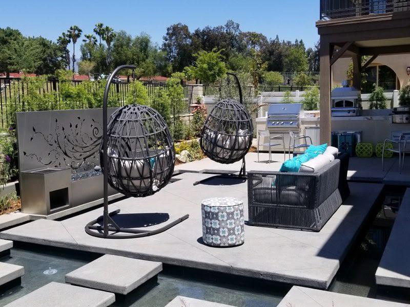 The Milano Hanging Chair is the perfect balance between intricate pattern combined with an organic, free flowing aluminum structure. Its cocoon frame is expertly wrapped in premium all-weather olefin rope in Slate, and styled with 4 tufted cushions for maximum comfort.