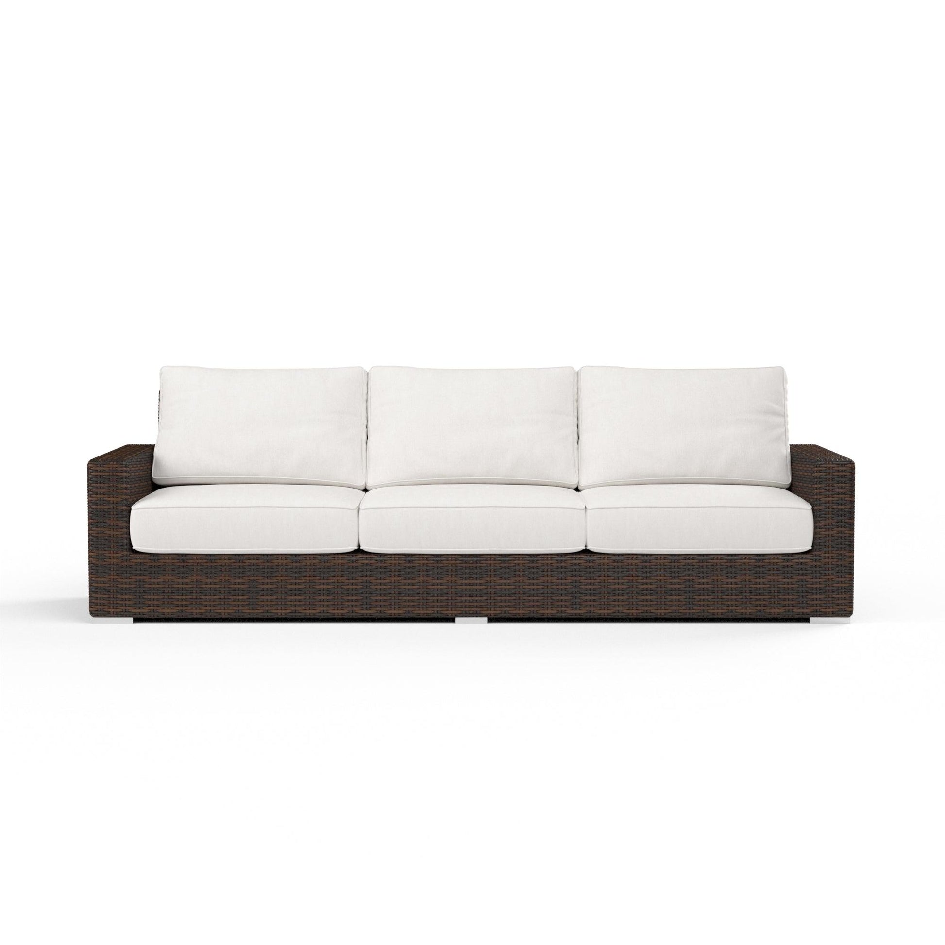 Inspired by the coastal town of its namesake, The Montecito Sofa offers purely sophisticated outdoor living. Expertly wrapped in a rich Cognac multi-colored weave, Montecito mimics natural materials with low maintenance in durable virgin resin wicker. Absolute comfort is provided with its generously sized frame and advanced seating support.