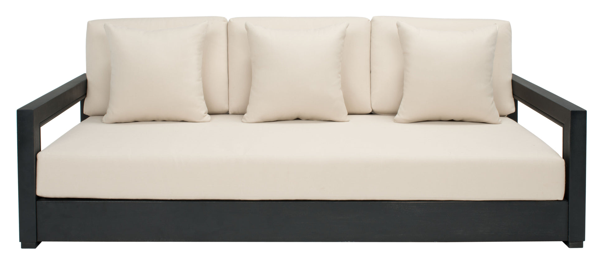 Sit down, relax, and unwind in this elegant Montford 3-Seat Sofa. Styled with contemporary cut-out arms in sleek black metal, Montford's plush beige upholstery creates a luxe aura of comfort.