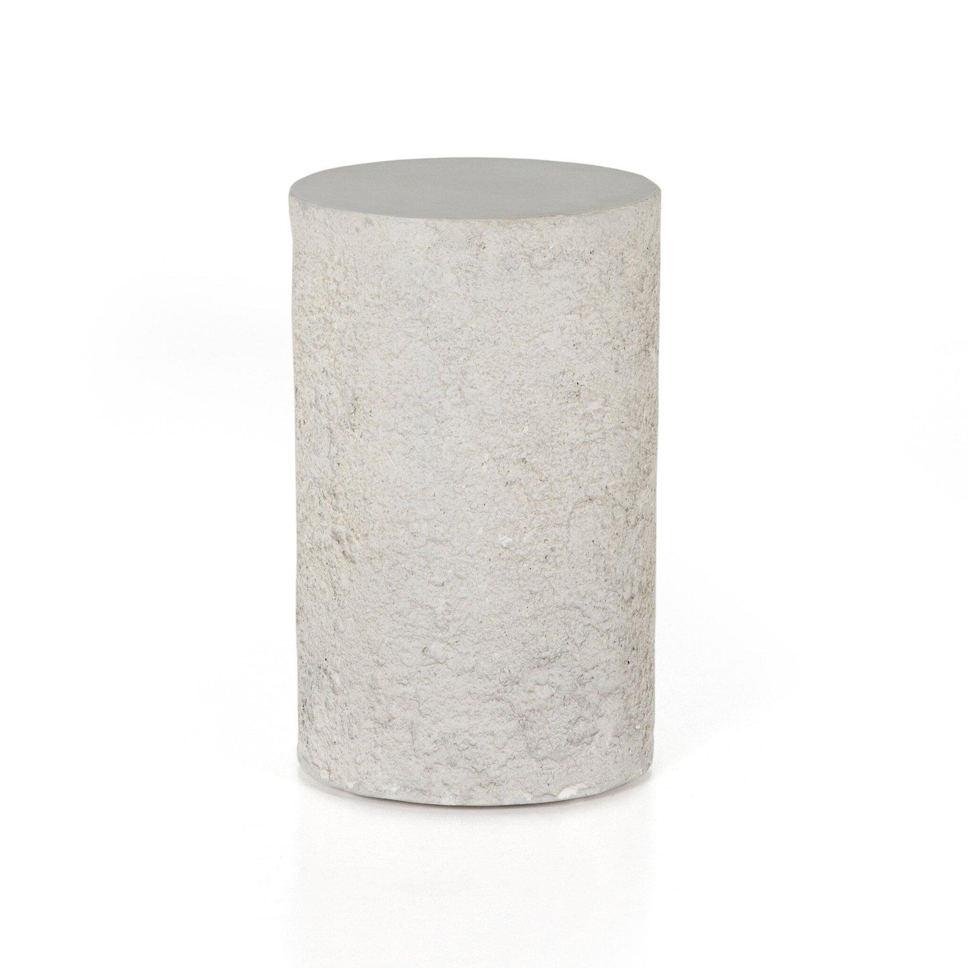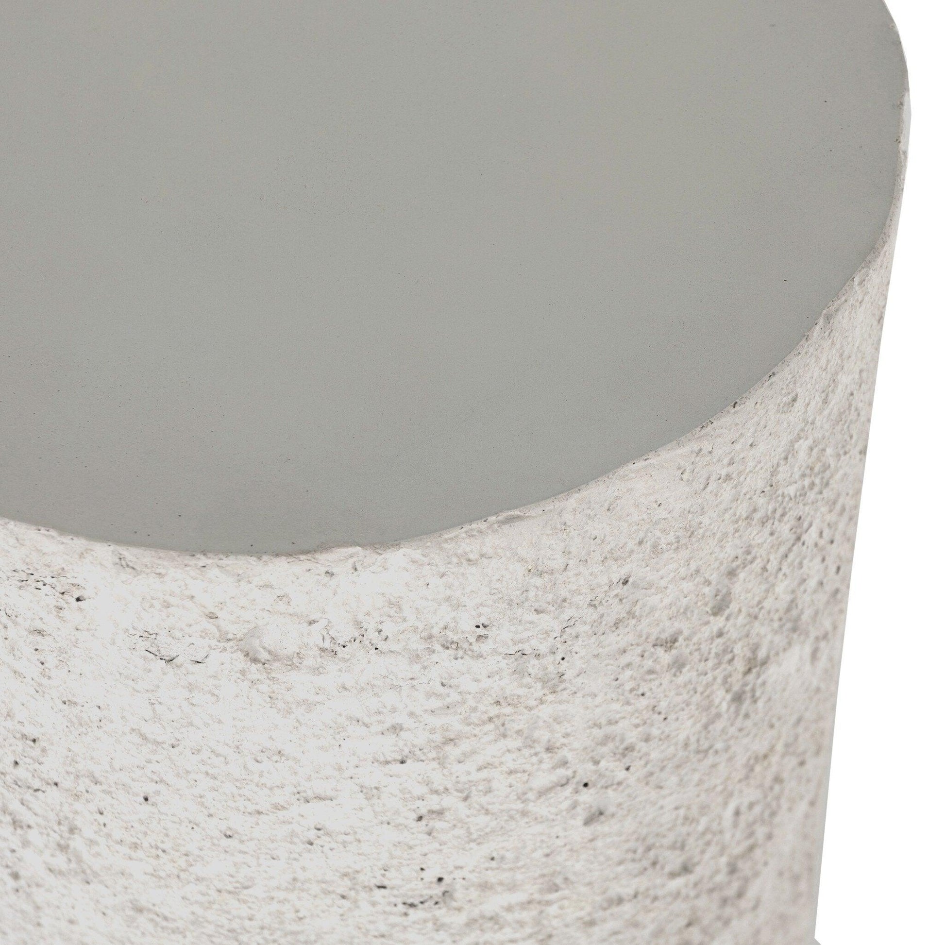Bring a touch of industrialism to outdoor styling. A rounded end table of solid concrete features raw edging for texture and novelty alike. Cover or store indoors during inclement weather and when not in use.