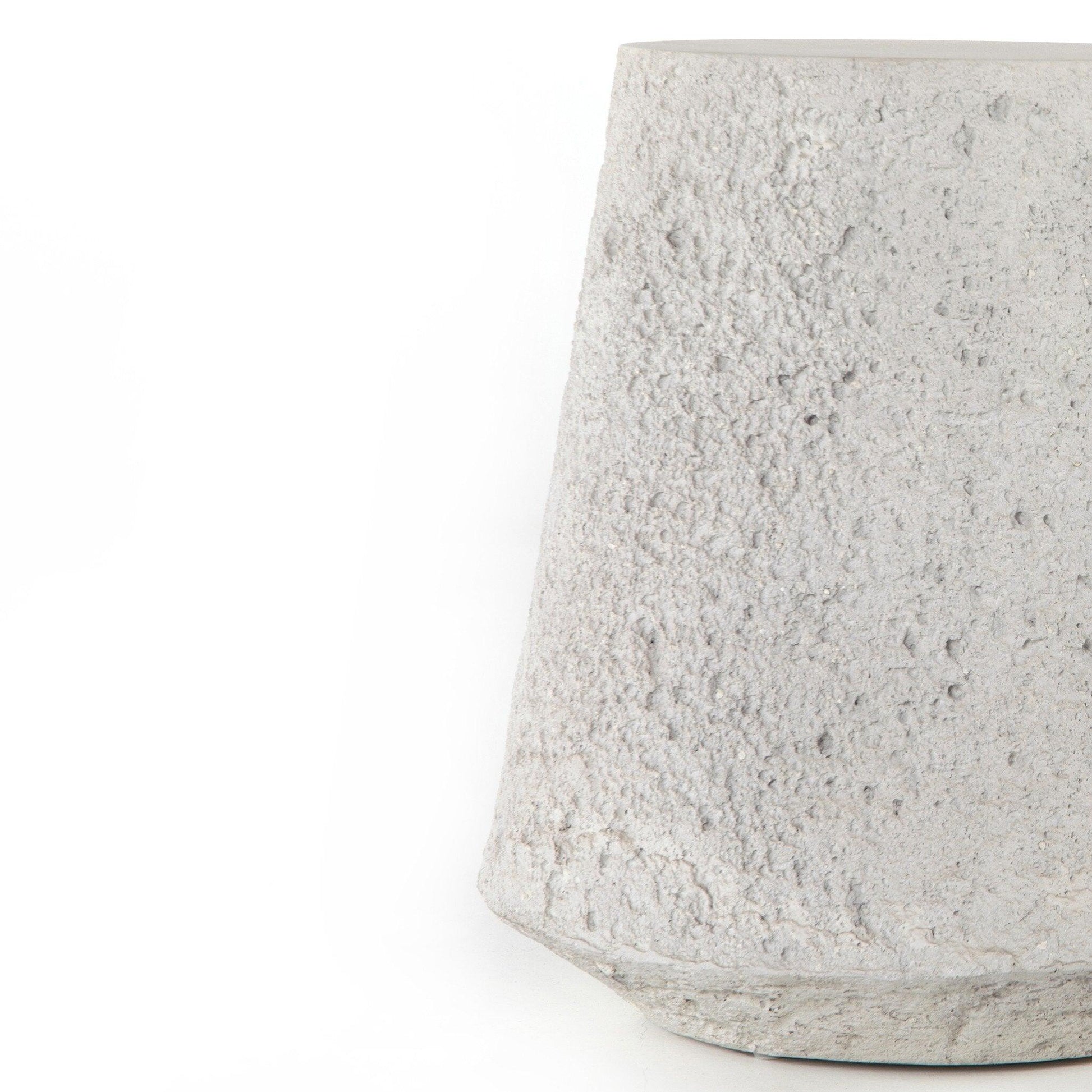 Bring a touch of industrialism to outdoor styling. A tapered end table of solid concrete features raw edging for texture and novelty alike with a smooth clean surface. Cover or store indoors during inclement weather and when not in use.