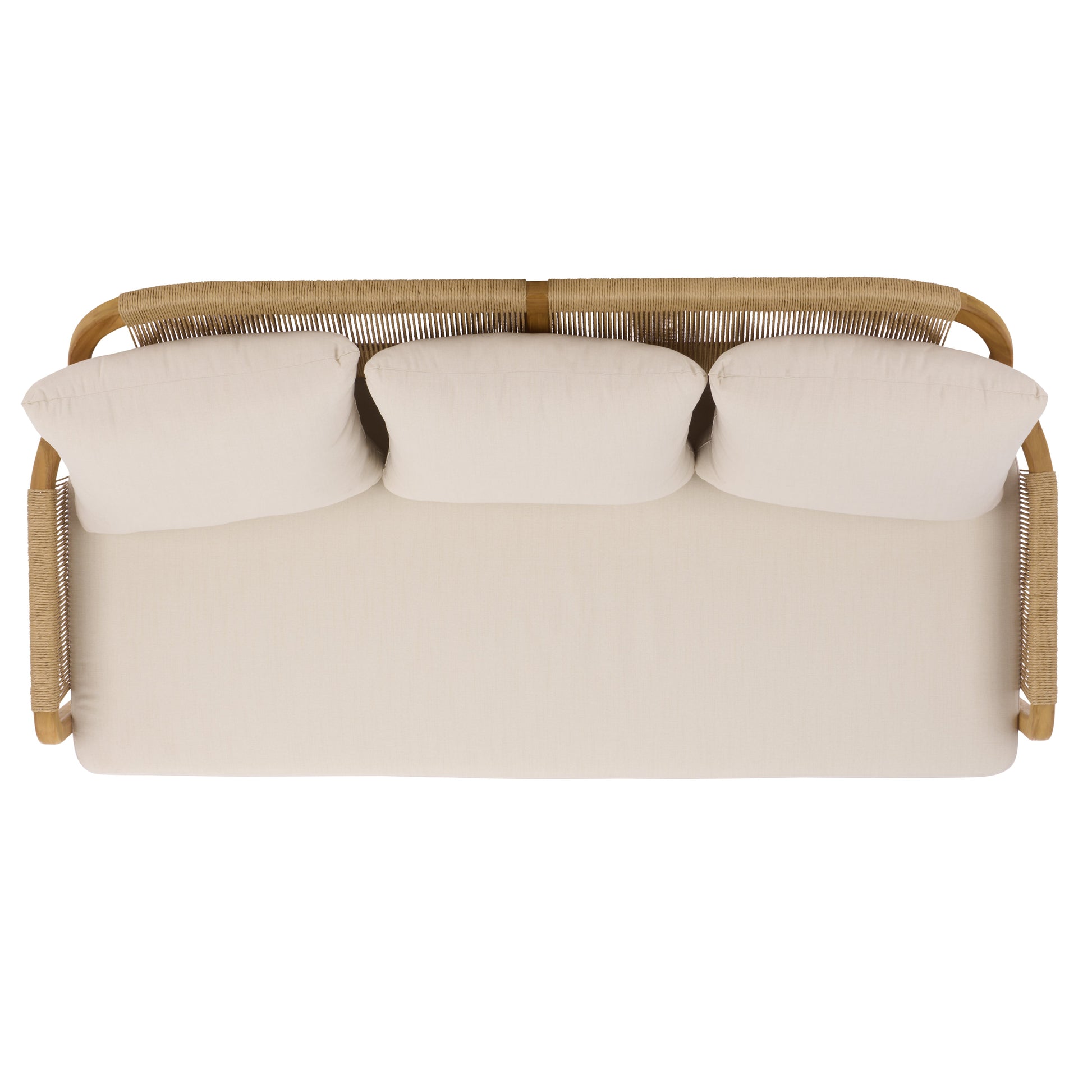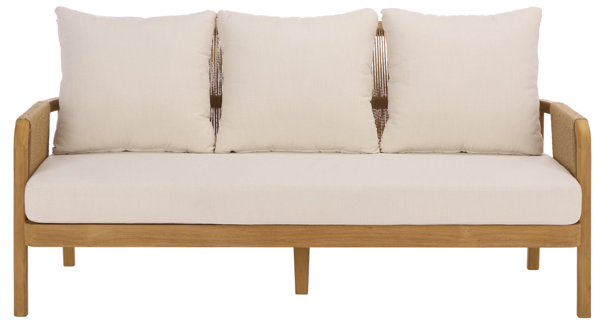 Experience outdoor relaxation like never before with the Rogers Teak and Hyacinth Patio Sofa. Featuring an elegant blend of natural and beige tones, this sofa is crafted to enhance your exterior space with a touch of sophistication. The careful fusion of durable wood and twisted hyacinth material creates a stunning visual appeal that will elevate your patio setting.