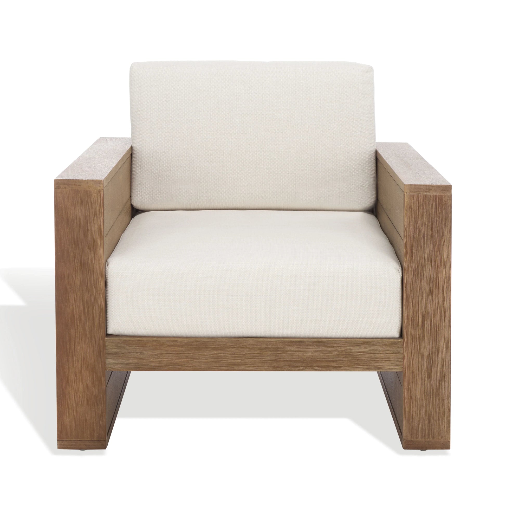 Transform your patio or garden with the refined style of the Safavieh Couture outdoor furniture collection, featuring the Santiago Eucalyptus Patio Chair. This elegant chair is expertly crafted from sturdy eucalyptus wood, delivering exceptional durability and a natural charm that defines Safavieh outdoor furniture. The beige all-weather Olefin fabric enhances comfort while resisting fading and stains, ensuring your Safavieh Couture chair maintains its beauty season after season. Ideal for creating a cozy retreat, this Safavieh patio chair is the perfect addition to your outdoor seating arrangement. Assembly Required.