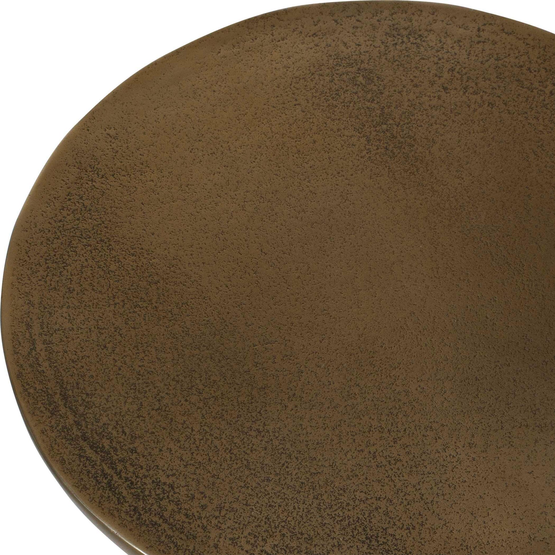 The Thorp Outdoor Accent Table, Crafted From Durable Aluminum With A Mottled Antique Brass Finish, Offers A Blend Of Modern Style And Rustic Charm. Its Unique Design And Weather-resistant Construction Make It An Ideal Addition To Contemporary Outdoor Spaces.