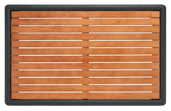 Bring style and convenience to any outdoor space with our Tommy patio coffee table. Our sleek and streamlined table employs a wooden tabletop beautifully framed with a metallic border. The rich organic grains and tonal variations of Acacia serve as the perfect complement to the black matte finish. Featuring sleek conical legs with a metallic cap, our coffee table effortlessly combines industrial beauty with organic grace. It remains a durable and versatile addition to your patio, backyard, or balcony.